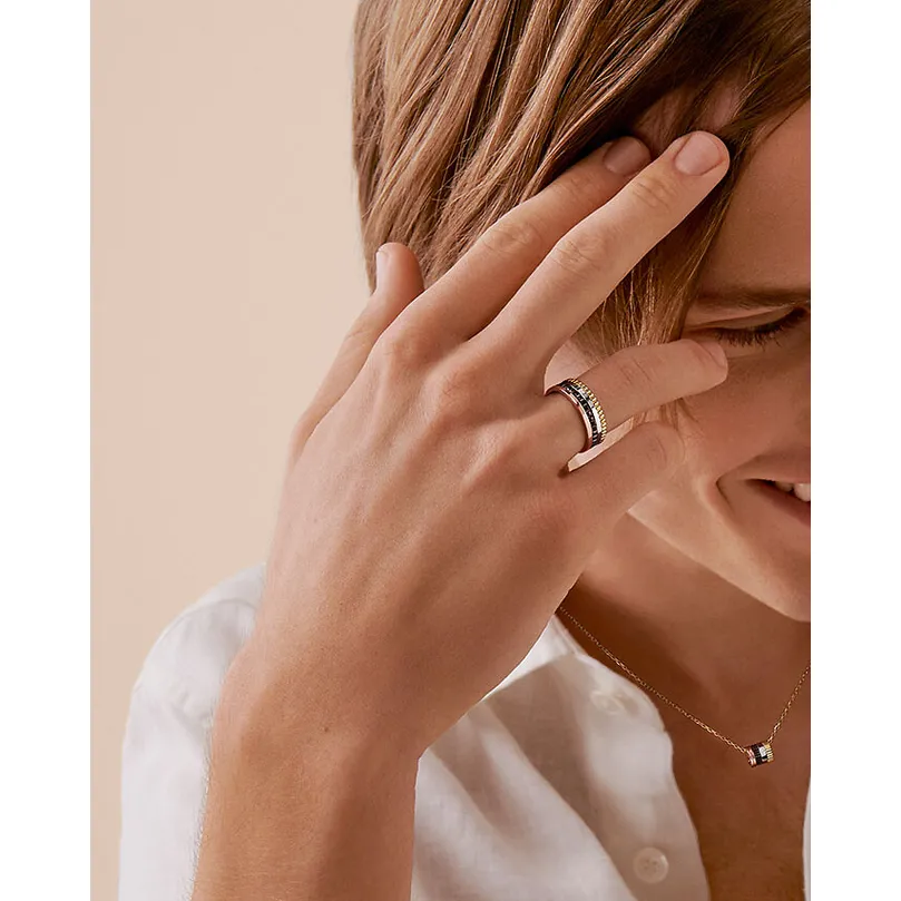 The Quatre ring rises to the next level in a diamond-set pendant. With a Quatre pendant, you wear a whole era in the history of the most Parisian of all High Jewelry Maisons around your neck. It offers you the confidence to stand out, in particular if you wear it against a deep black turtleneck.