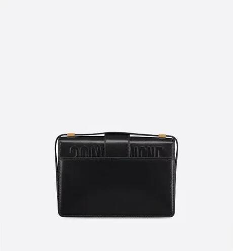 The 30 Montaigne line is inspired by the emblematic address and offers essential pieces that embody the House's iconic codes. The handbag is crafted in black box calfskin for an elegant and modern look. The flap is embellished with an antique gold-finish metal 'CD' clasp, inspired by the seal of a Christian Dior perfume bottle. Refined details, such as an embossed '30 MONTAIGNE' signature on the back, define this unique design. Featuring an adjustable leather shoulder strap, the bag may be carried by hand, worn over the shoulder or crossbody.