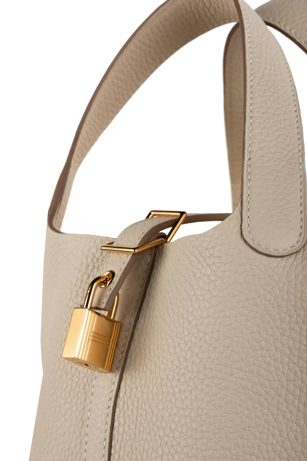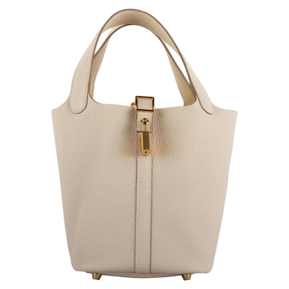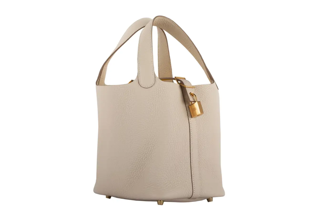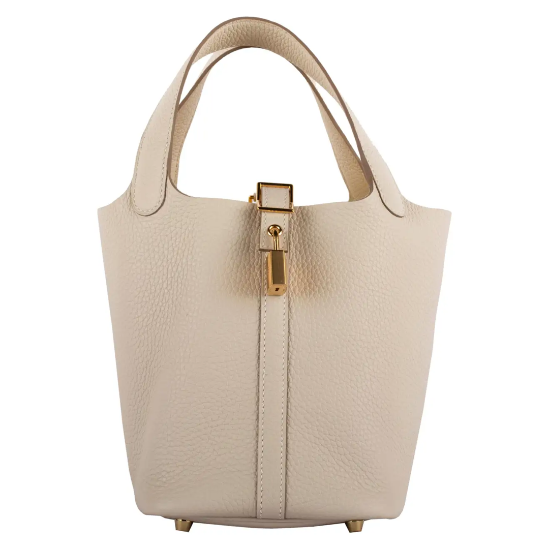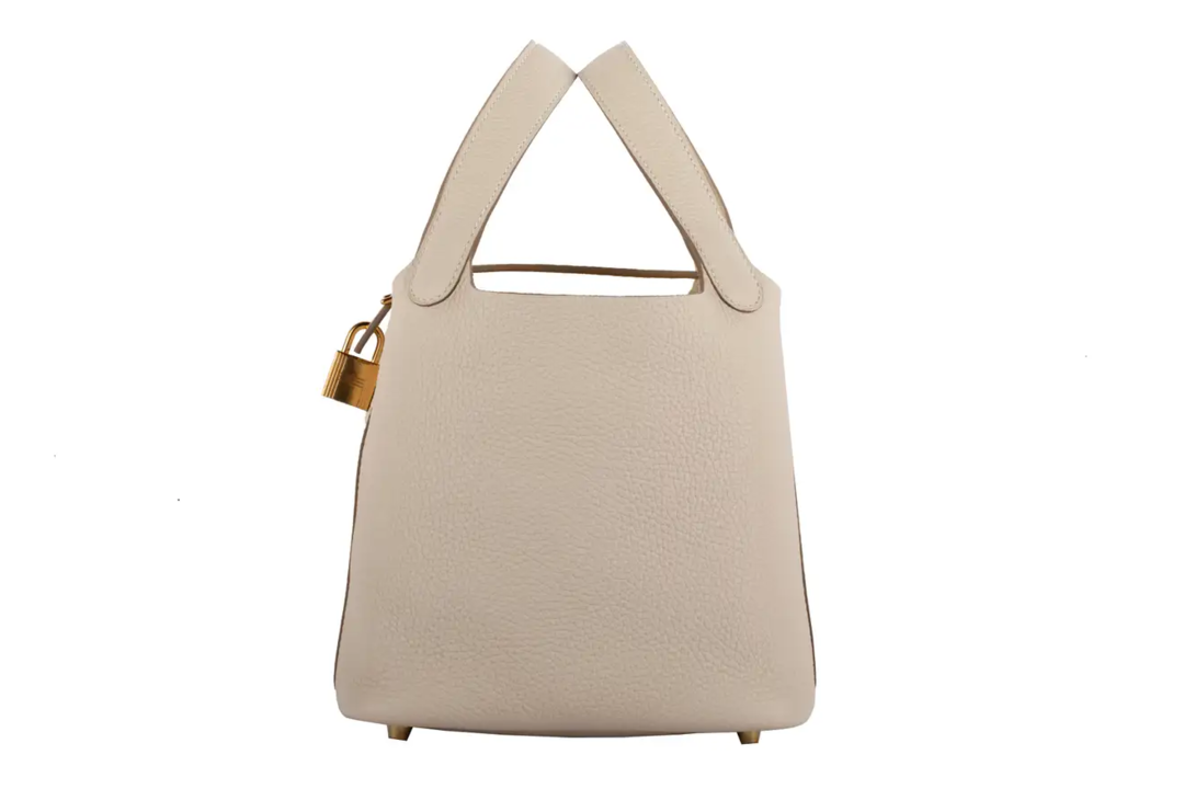 1stdibs Exclusives From Three Over Six Brand: Hermès Style: Picotin Size: 18cm Color: Craie Leather: Taurillon Clemence Hardware: Gold Year: 2020 Y Condition: Pristine, never carried: The item has never been carried and is in pristine condition complete with all accessories. Accompanied by: Hermès box, dustbag, key & lock, felt protector and leather care booklet
