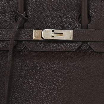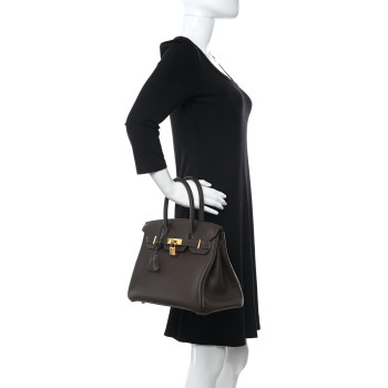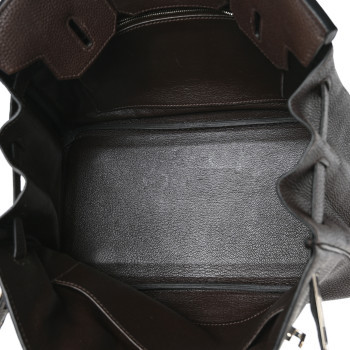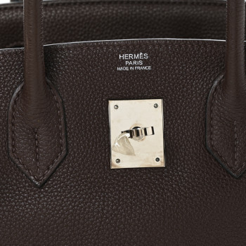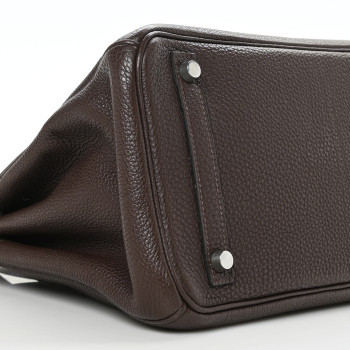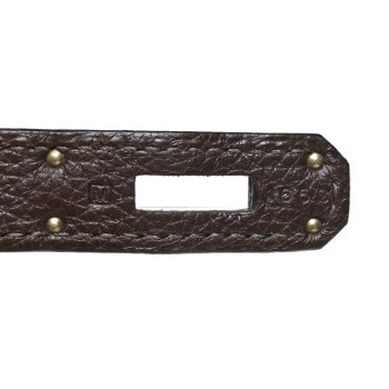 This is an authentic HERMES Togo Birkin 30 in Chocolate. This stylish tote is finely crafted of grained leather in chocolate brown. The bag features rolled leather top handles, a leather belt, and palladium plated hardware. This opens to a matching leather interior with zipper and patch pockets.