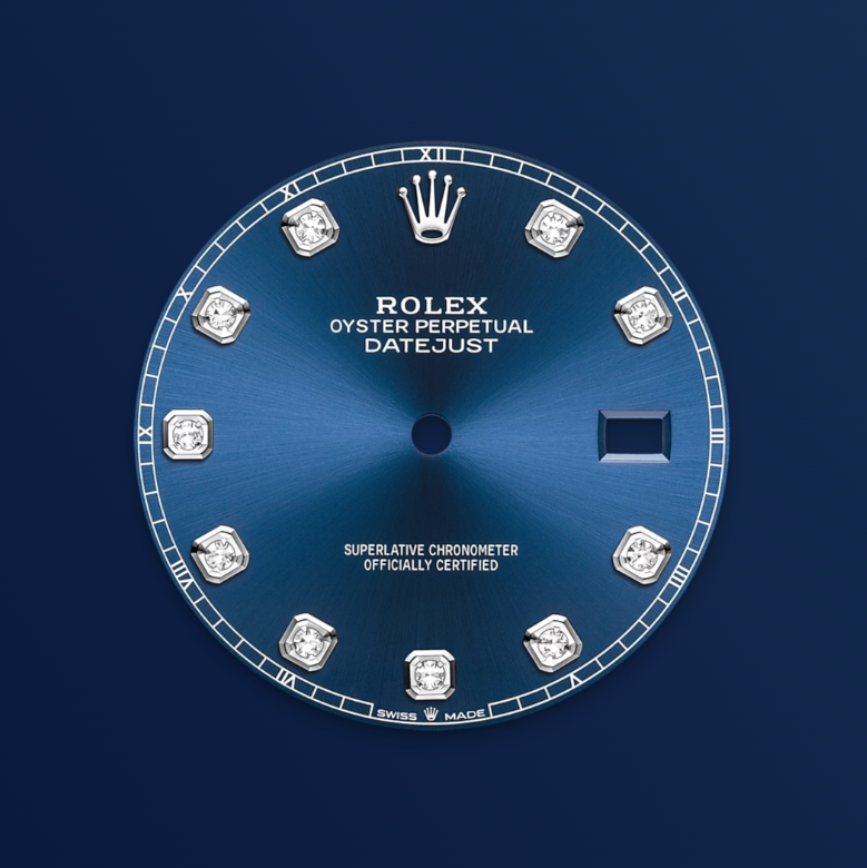 The Oyster Perpetual Datejust 41 watch is available in white gold and Oystersteel , with a diamond-set bright blue dial and a Jubilee strap.
