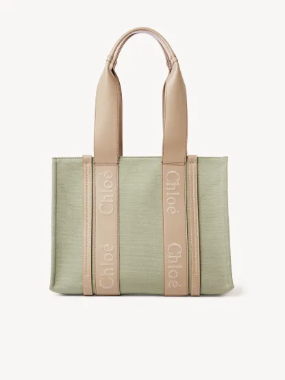 Tote bag in linen canvas & shiny calfskin with embroidered Chloé logo