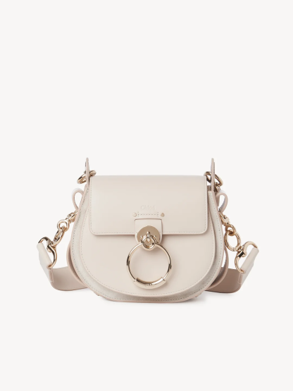 Crafted from an elegant combination of shiny calfskin and suede calfskin, the Tess small purse reveals a sophisticated round silhouette anchored in the Maison's DNA. The striking front loop showcases Chloé's "O" signature.