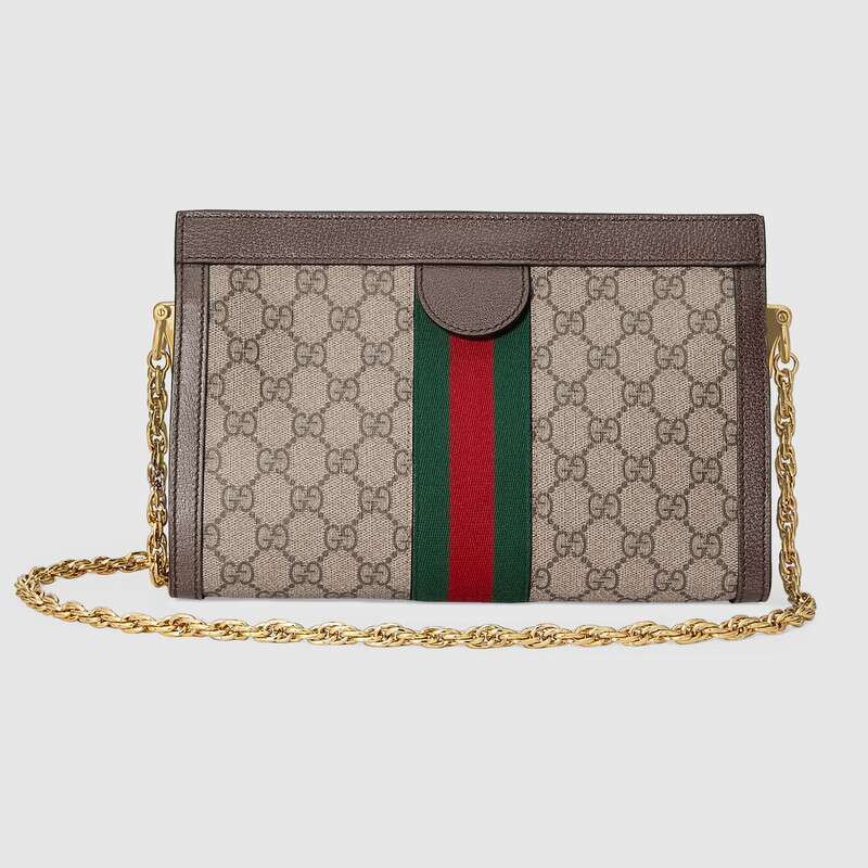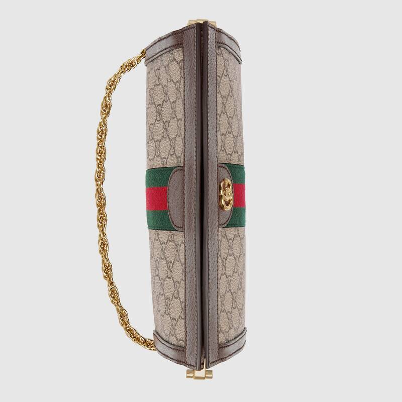 Crafted in GG Supreme canvas with inlaid Web stripe detail, the chain strap shoulder bag boasts a vintage inspired design. The structured shape secures with a magnetic closure, trimmed with leather and Double G hardware—an archival detail.