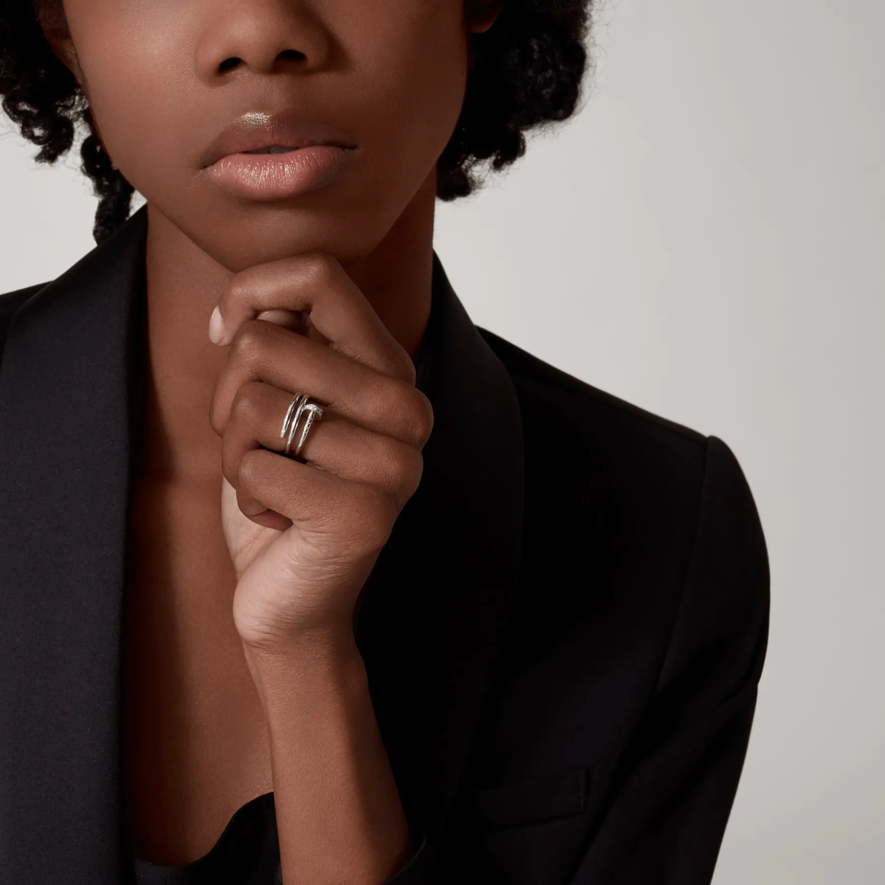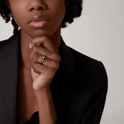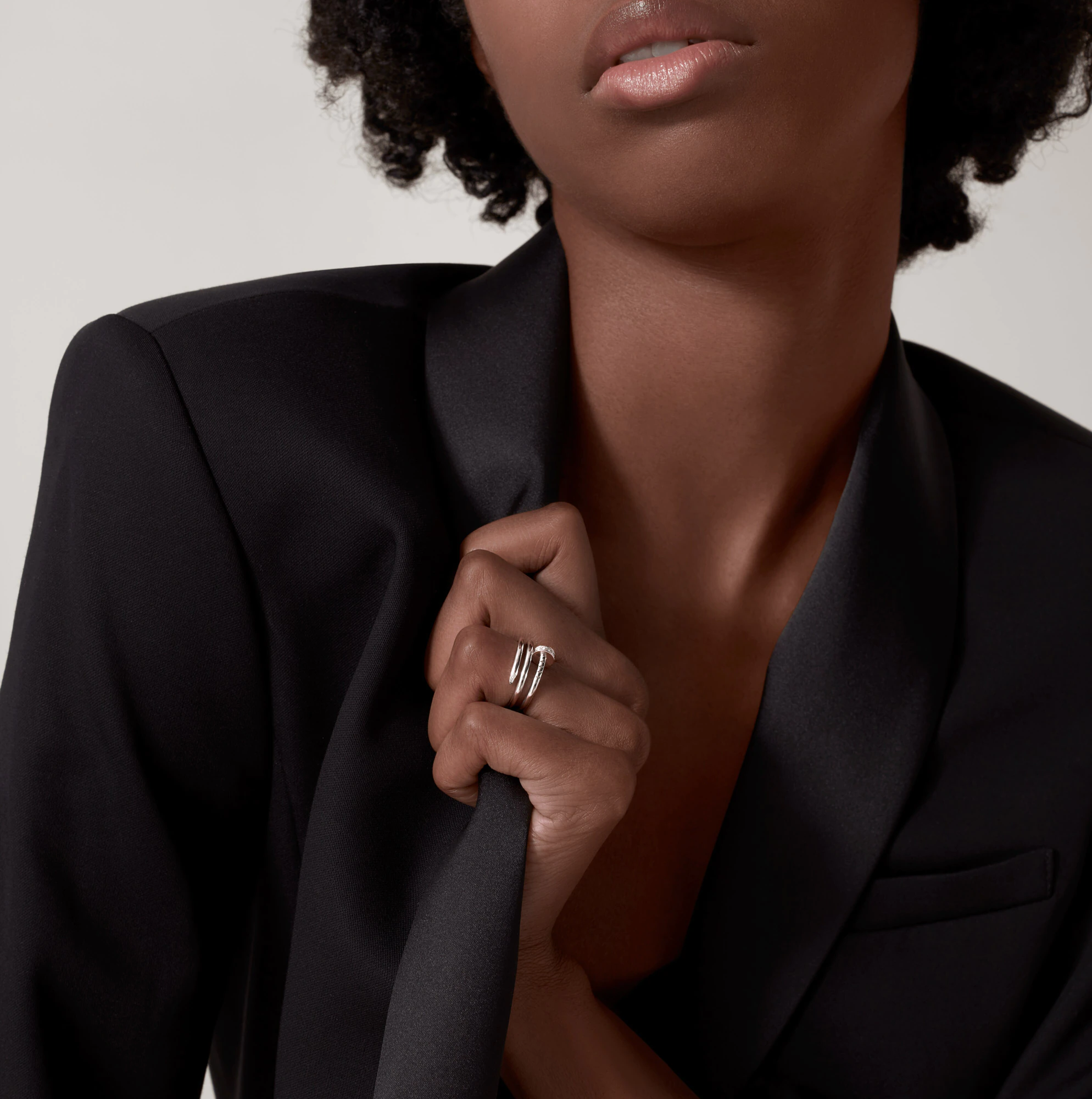 Juste un Clou ring, 18K white gold, set with 14 brilliant-cut diamonds totaling 0.08 carats. Width: 1.8mm.