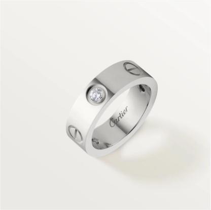 ring, 18K white gold, set with 3 brilliant-cut diamonds totaling 0.22 carats. Width: 5.5mm.