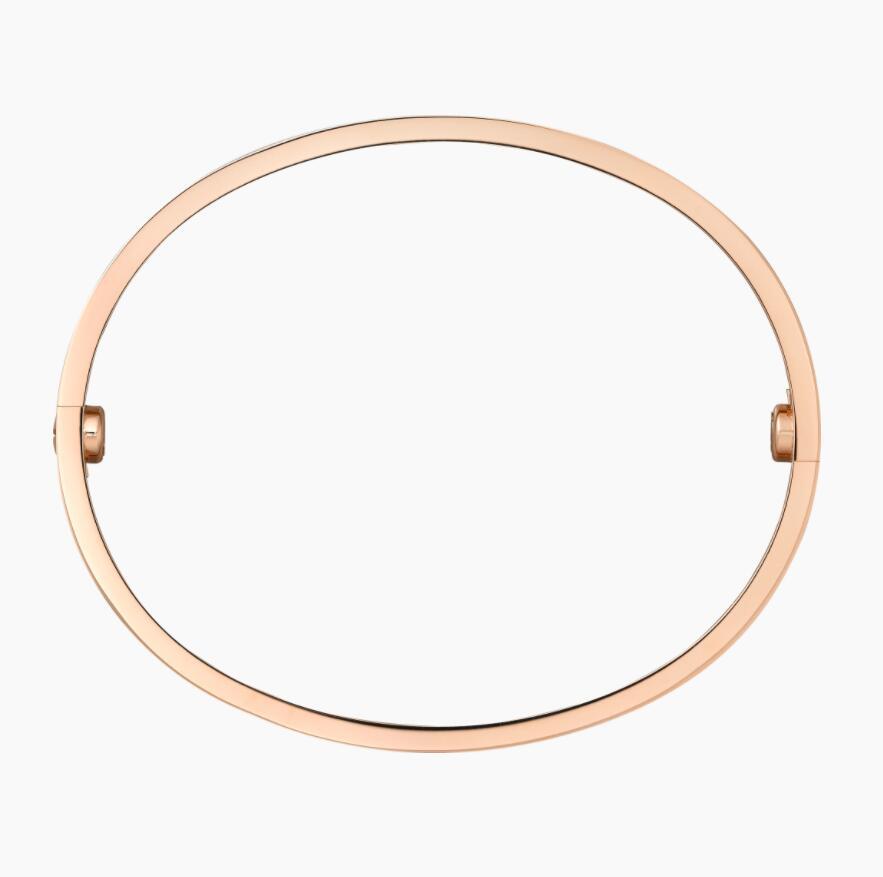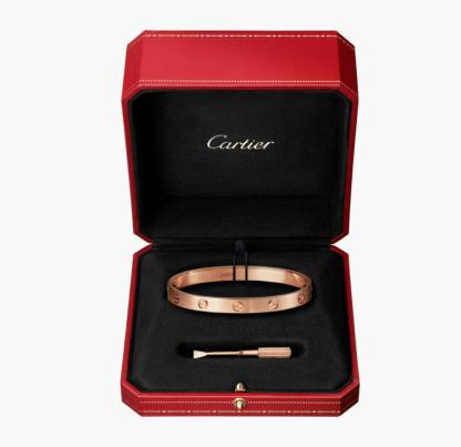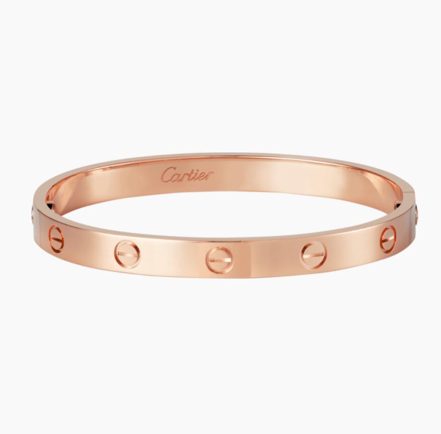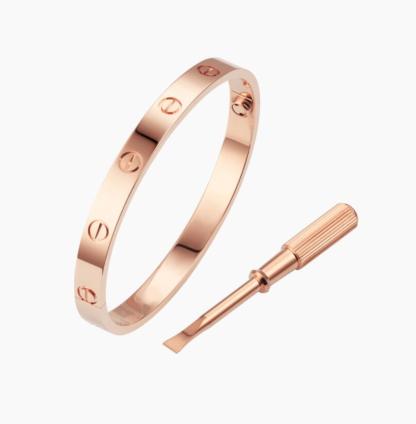 LOVE bracelet, 18K rose gold. Sold with a screwdriver. Width: 6.1mm. The iconic #LOVE# bracelet has been a symbol of free-spirited #LOVE# since 1969. Its screw motif and famous locking technology are truly timeless design signatures, while its oval shape ensures a close but comfortable fit to the wearer’s wrist. The locking mechanism consists of two functional screws found on each side of the bracelet. Each #LOVE# bracelet is sold with a matching screwdriver specifically created for this piece; you will need the help of a partner to secure your bracelet correctly. To discover your recommended #LOVE# bracelet size, please visit our Bracelet Sizing Chart. Add one centimeter to your size for a tight fit, or two centimeters for a looser fit.