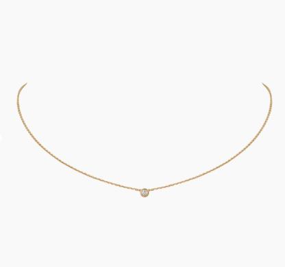 Diamants Légers necklace, 18K yellow gold, set with a brilliant-cut diamond totaling 0.04 carat. Diameter of the pattern: 3.79 mm. Chain length: 380 to 410 mm.
