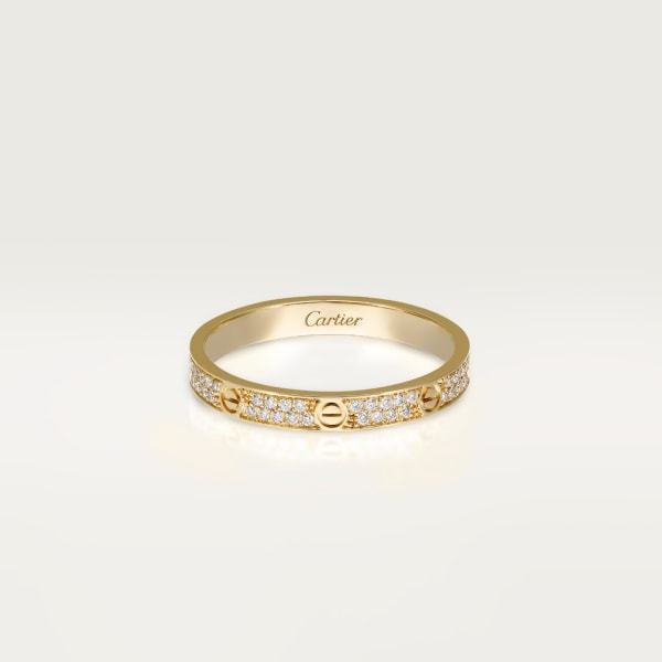 Love ring, small model, yellow gold 750/1000, set with 72 brilliant-cut diamonds totalling 0.19 carats. Width: 2.6 mm (for size 52).