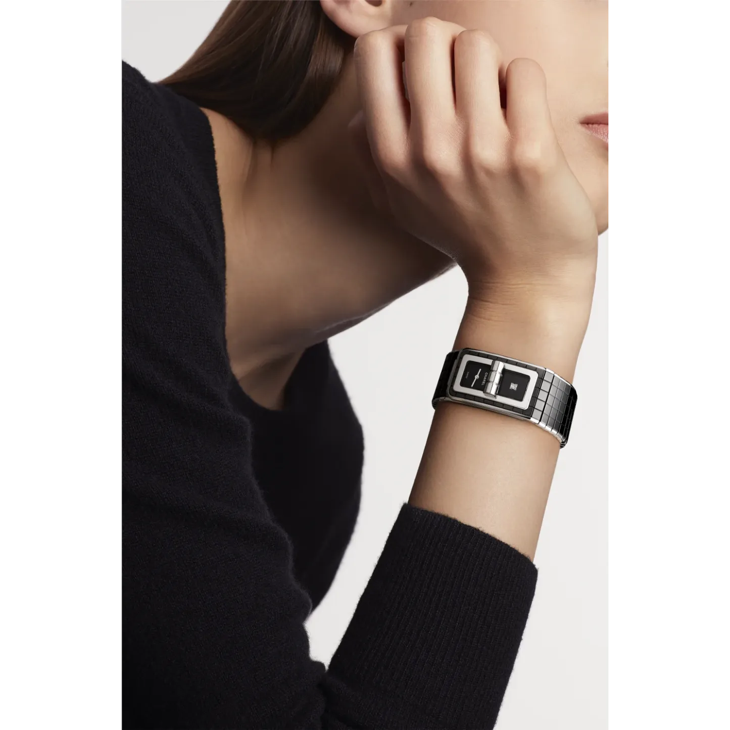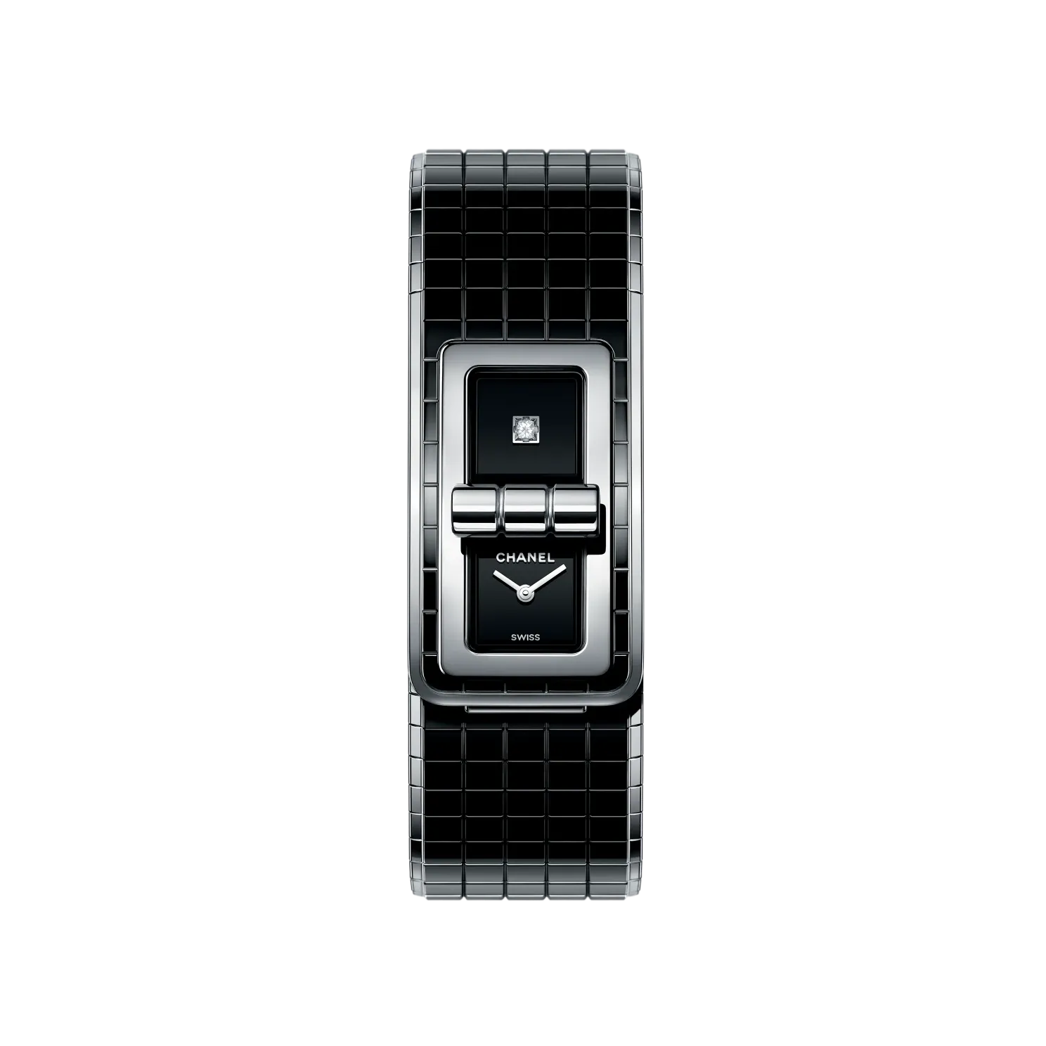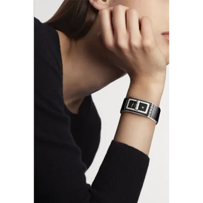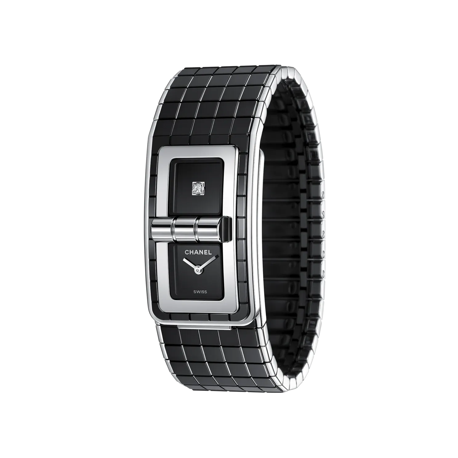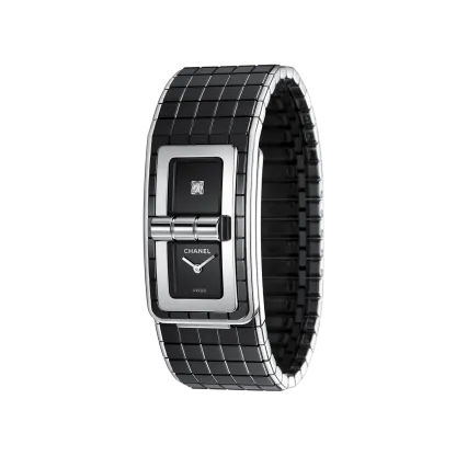 Black-lacquered dials, one set with a princess-cut diamond (~0.05 carat)