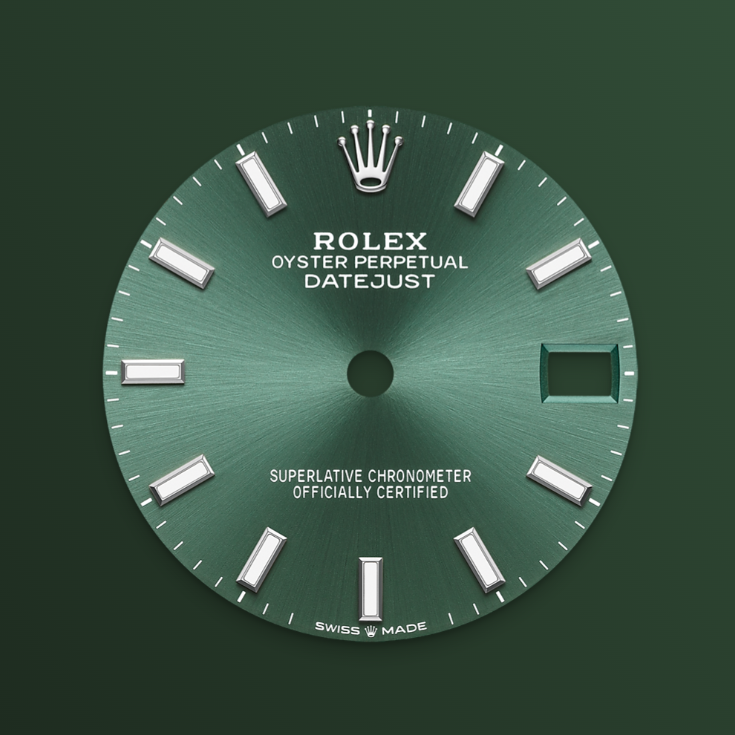 Many of the dial models in the Oyster collection feature a sunray effect that reflects a light luster. This effect requires an exceptional brushing technique to create an engraving that extends outward from the center of the dial.