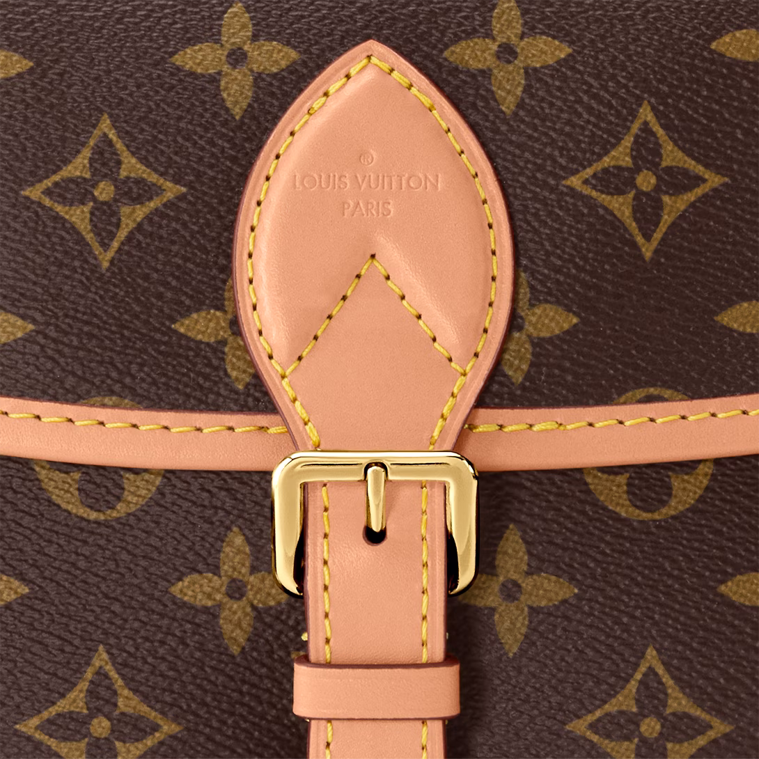 The Diane satchel in Monogram canvas revisits a classic model from the 90s, combining such vintage details as leather corners and an archival-inspired buckle with the modern functionality of smart pockets and a well-organized interior. The exclusive wide jacquard strap reverses from a bold Louis Vuitton signature to a subtle Monogram Flower motif.