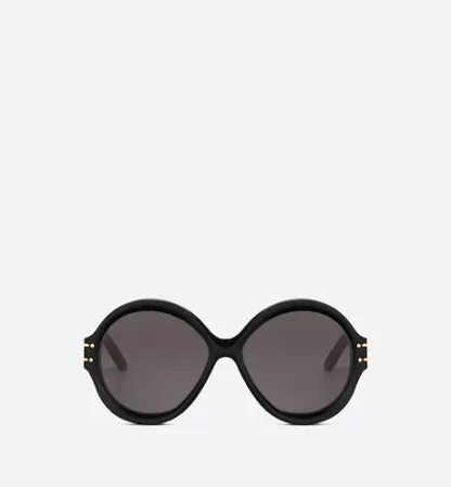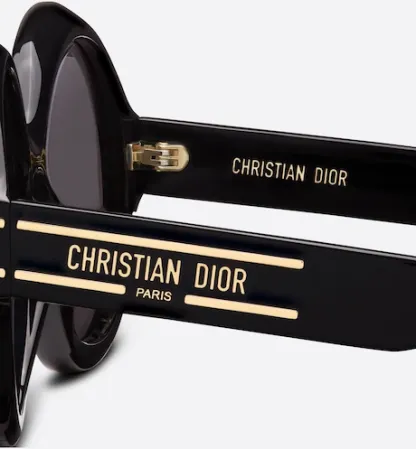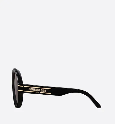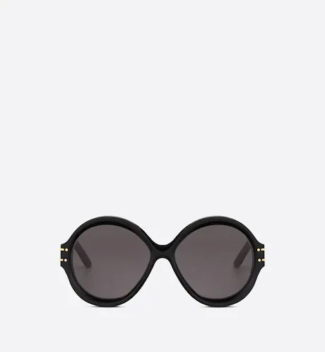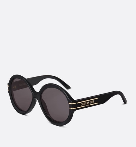 The DiorSignature R1U sunglasses are part of the House’s new iconic line and are a modern and bold round-shaped design. The black acetate frame is distinguished by a play on volumes and curves for a graphic effect. The temples reveal a 'CHRISTIAN DIOR PARIS' signature, further embellished with gold-finish metal lines that end at the gray lenses. The new essential creation lends a Dior style to any look.