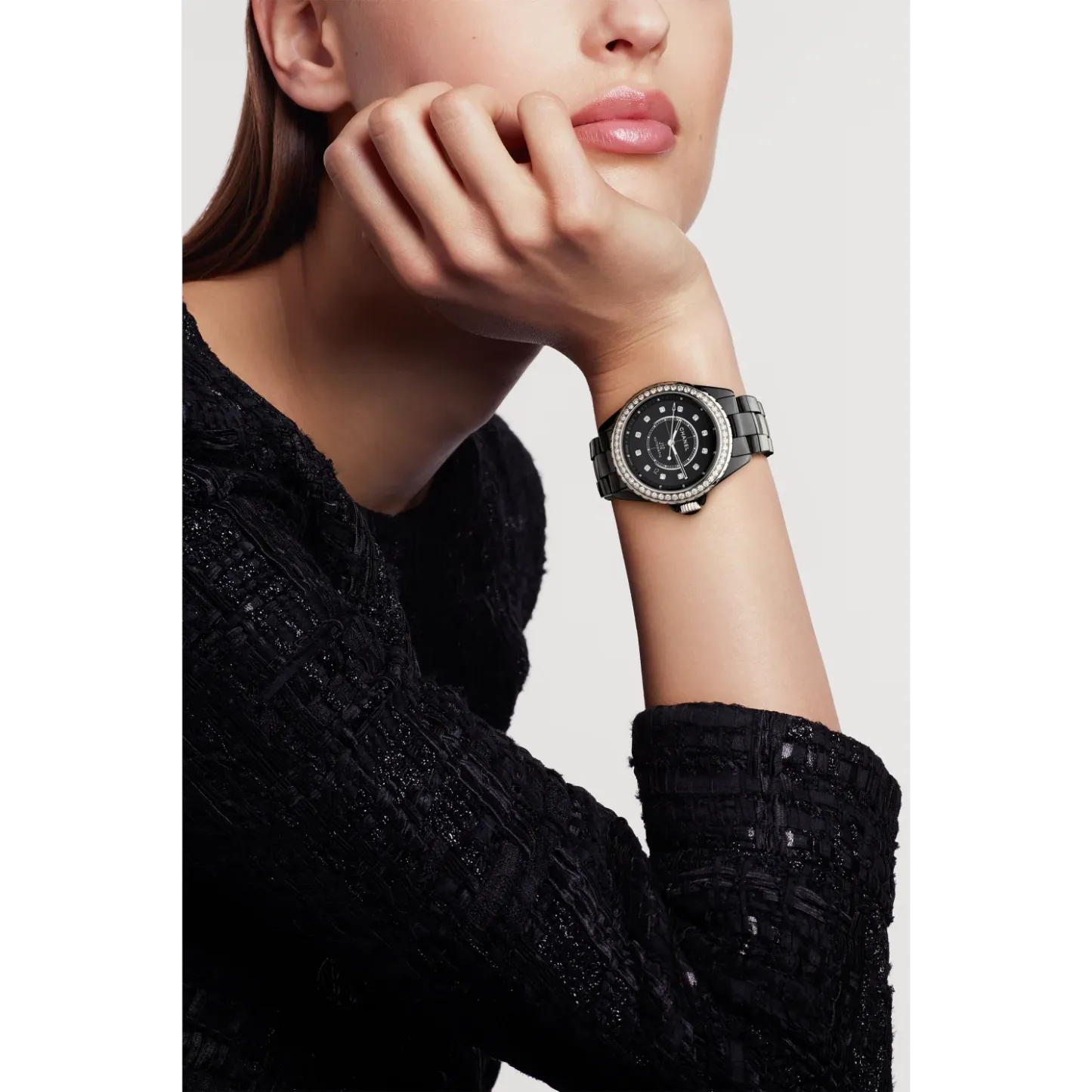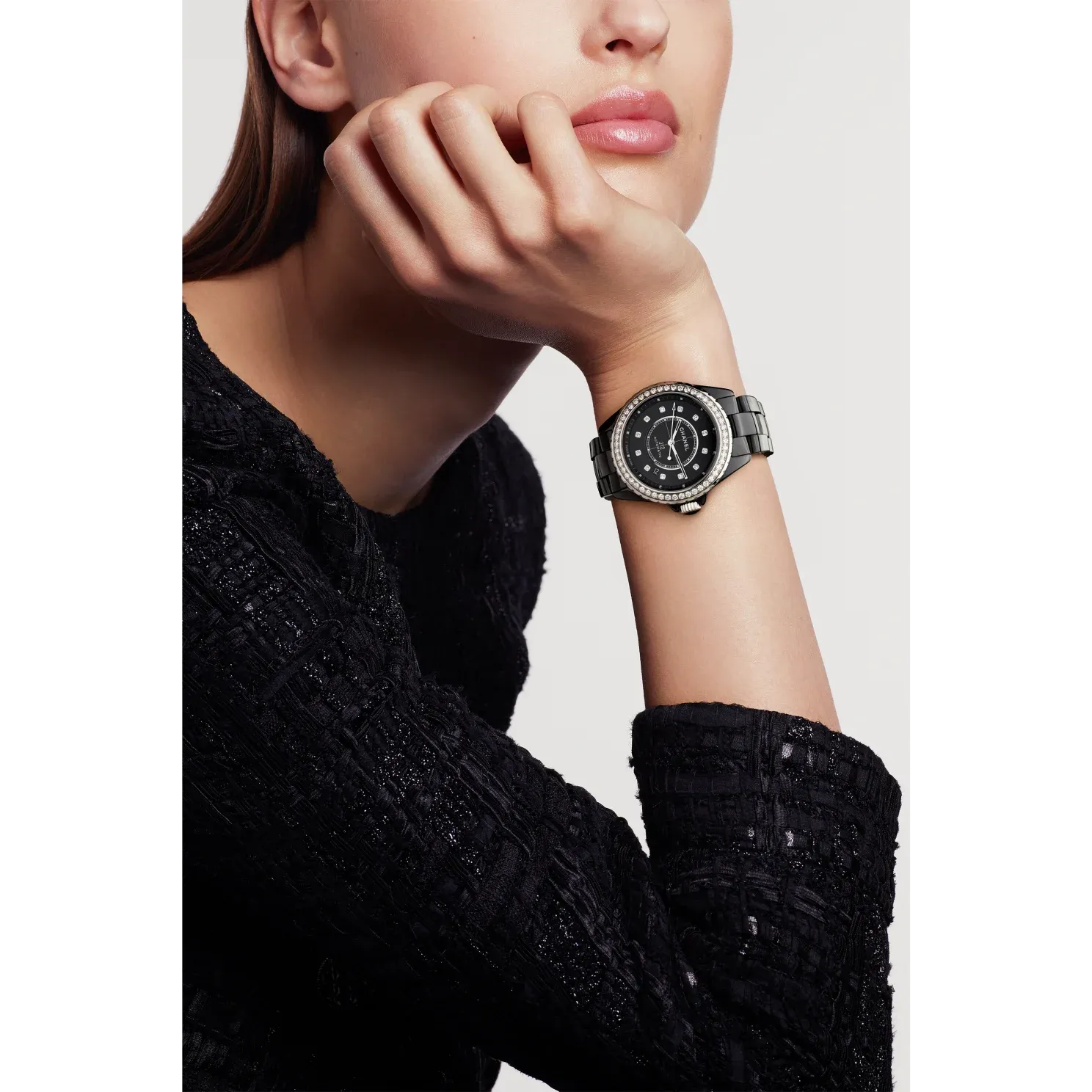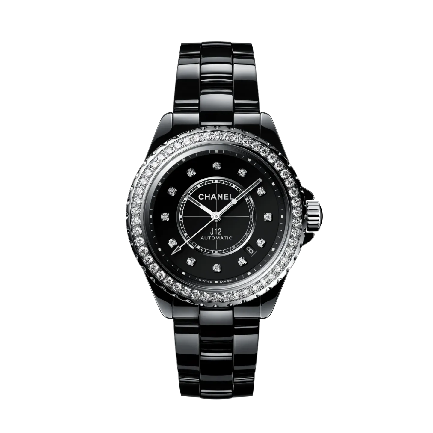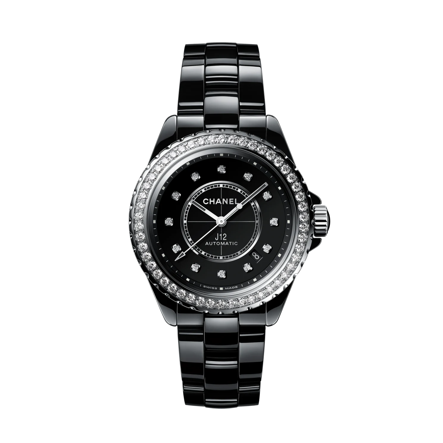 Black-lacquered dial set with 12 diamond indicators (~0.09 carat)