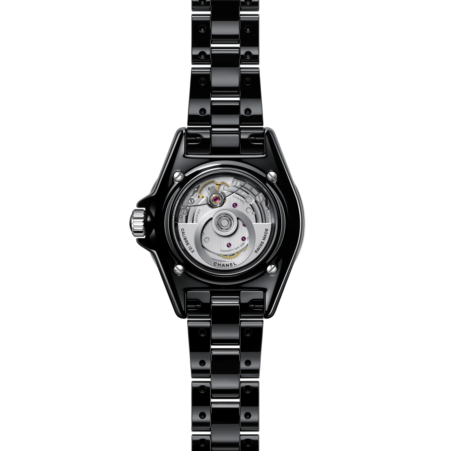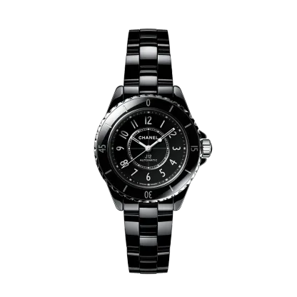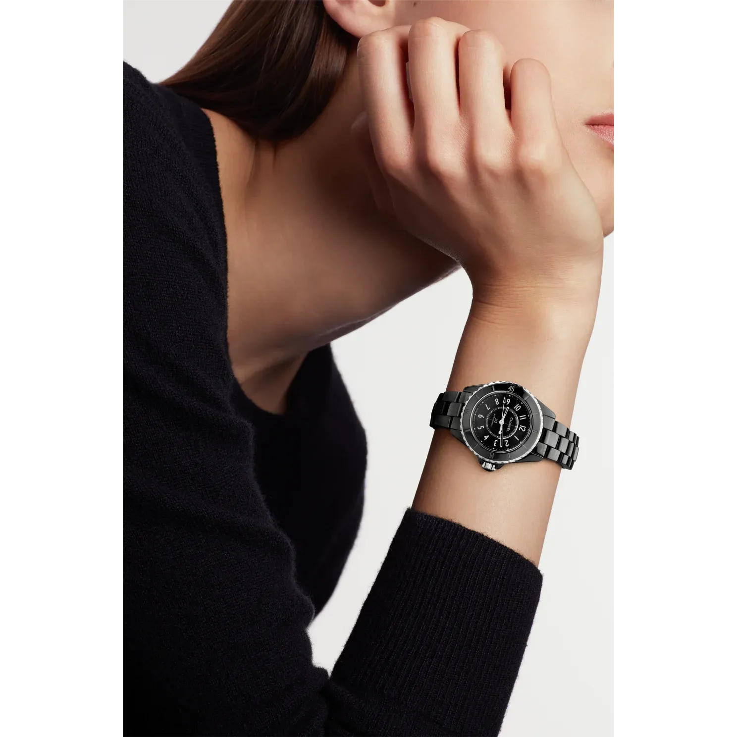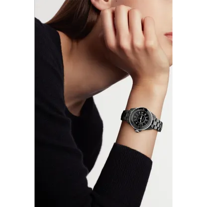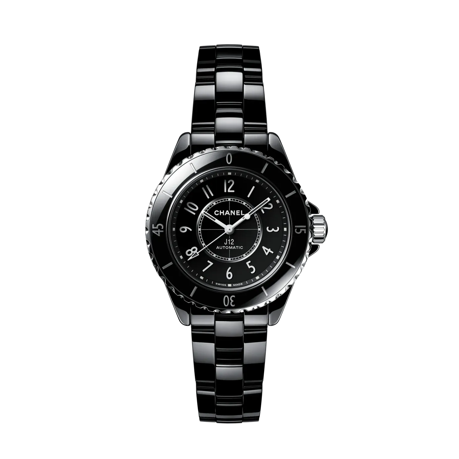 Black-lacquered dial with white ceramic indicators