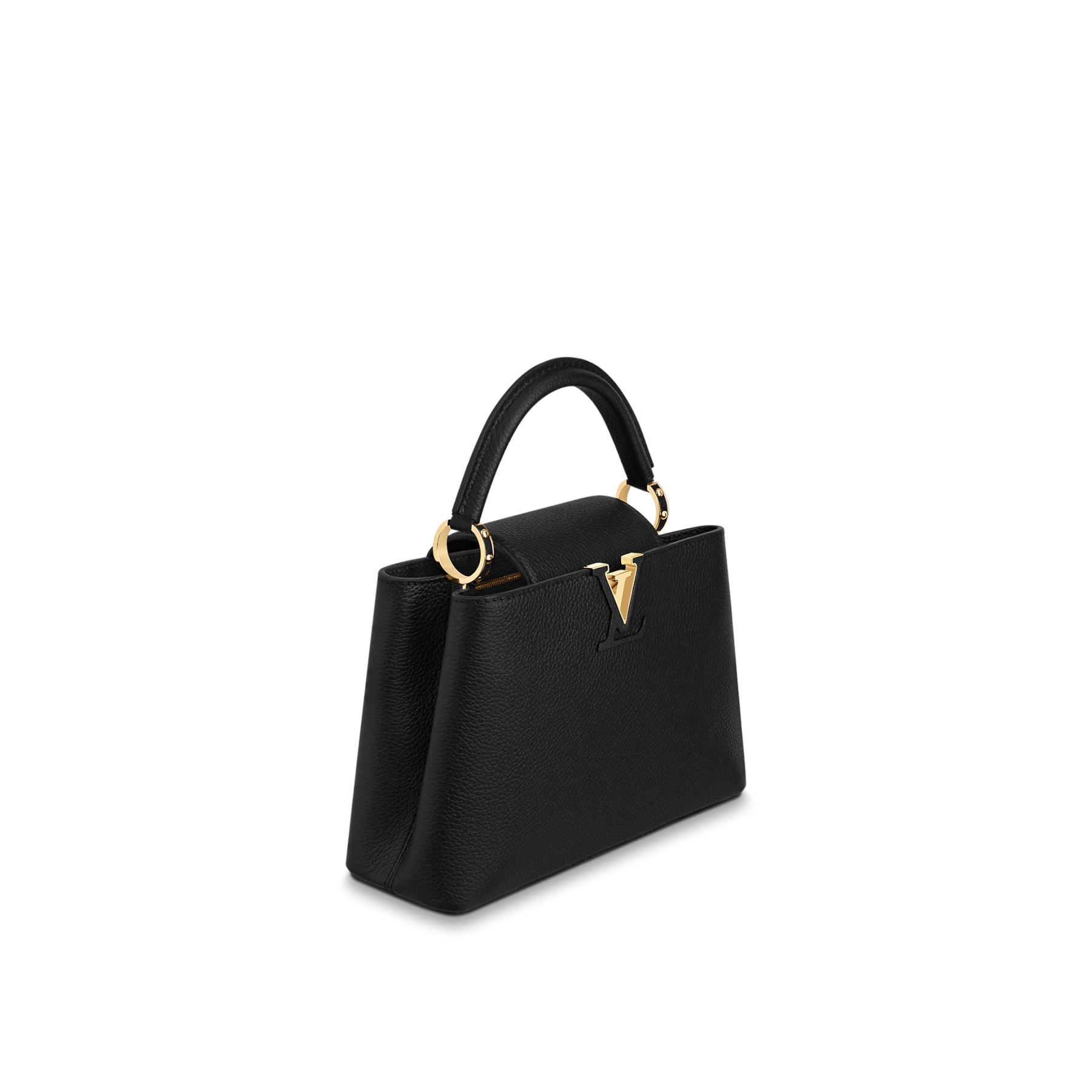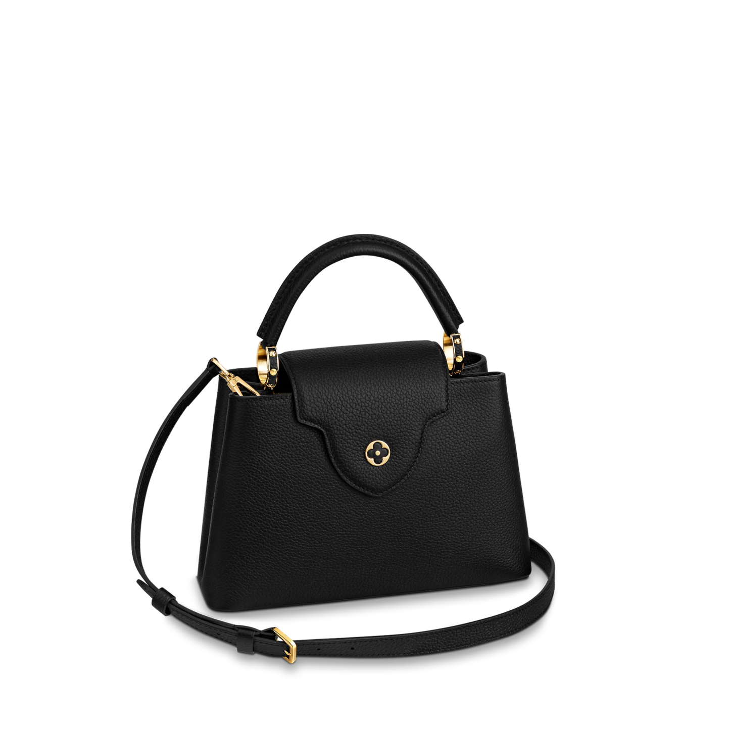 Fashioned from full-grain Taurillon leather, the now-classic Capucines BB handbag displays a host of House signatures: leather-wrapped LV Initials, jewel-like handle mounts inspired by historic trunks, and a distinctive flap with a Monogram Flower motif. Timelessly elegant, this charming model can be carried by hand or worn cross-body on its detachable strap. First launched in 2013, the Capucines is named for the Parisian street where Louis Vuitton first opened shop, in 1854.
