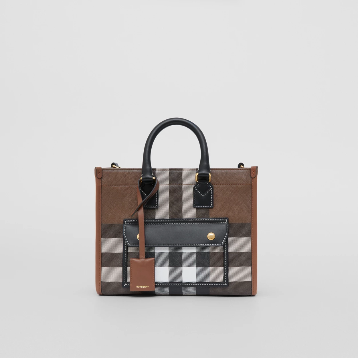 A spacious tote in our Burberry Check, trimmed with topstitched leather.