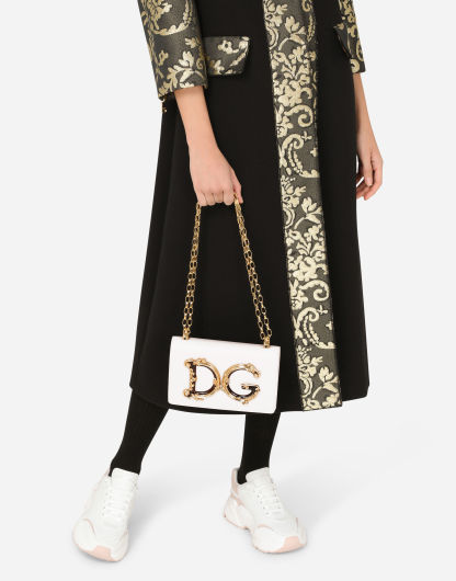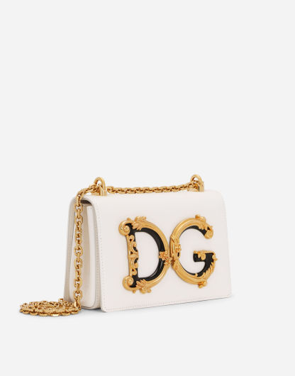 Elegant and sophisticated, the shoulder bag from the DG Girls line is made of nappa leather with a baroque DG logo in enamelled ABS and metalized vintage gold and is perfect for elegant evenings.