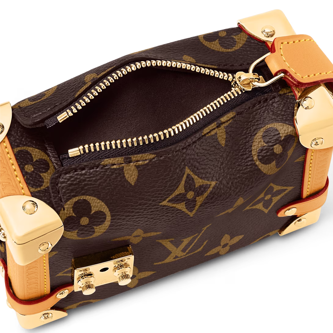The Pico Side Trunk draws inspiration from Louis Vuitton's travel heritage. Crafted from Monogram canvas with natural leather trim, it features the iconic S-lock and metal corners of the House's historic trunks. These heritage details are combined with modern functionality: a secure zip closure, a removable top handle and a removable, adjustable shoulder strap.