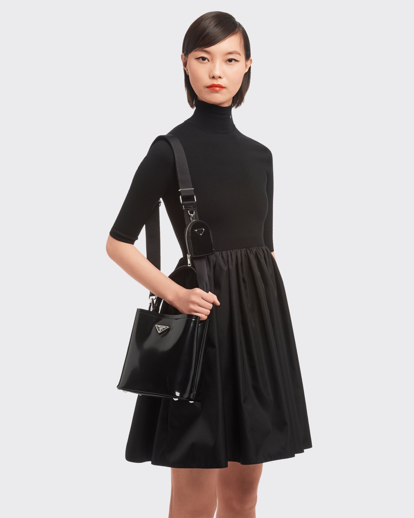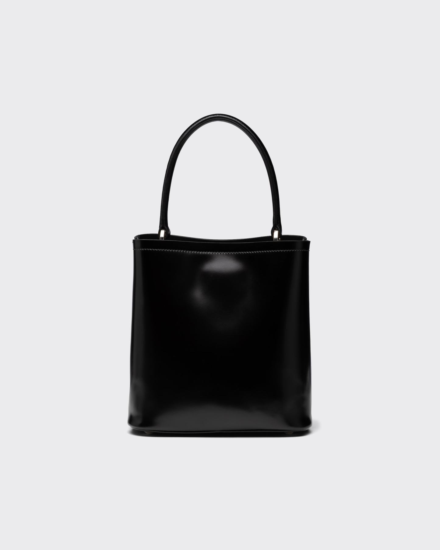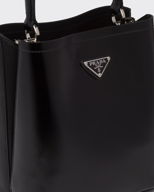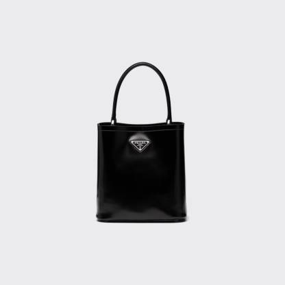 This Prada Panier bag is crafted in shiny leather with an elegant design.Vintage glossy leather has always been favored by the luxury world and has been the brand's signature material since its adoption by Prada.The bag features a detachable shoulder strap and an exclusive leather name tag with a metal lettering logo for brand identity.