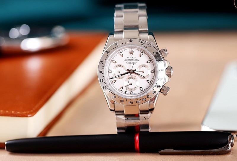 ROLEX DAYTONA COSMOGRAPH WHITE DIAL MEN'S LUXURY WATCH FOR SALE- Free Overnight Shipping | Order Now- With Manufacturer Serial Numbers- Swiss Made- White Dial- Index Hour Markers- Stainless Steel Bezel- Chronograph FeatureLarge Central Chronograph Second Hand30 Minute Counter Sub-Dial at 3 O'Clock12 Hour Counter Sub-Dial at 9 O'Clock- Small Second Sub-Dial at 6 O'Clock- Tachymetric Scale Engraved on Bezel- 72 Hour Power Reserve- Self-winding Automatic MovementCOSC Superlative Chronometer Certified- Rolex Caliber 4130- Vibrations Per Hour: 28,800- Jewels: 44- 6 Year Warranty- Guaranteed Authentic- Certificate of Authenticity- Manufacturer Box & Manual- Polished with Brushed 904L Oystersteel Stainless Steel Case- Polished with Brushed 904L Oystersteel Stainless Steel Oyster Bracelet- Scratch Resistant Sapphire Crystal- 100 Meters / 330 Feet Waterproof- 40mm = 1 1/2" Case, 6.5" Adjustable Bracelet- Case Thickness: 12.4mm- Inlet Size: 20mm- Fixed Bezel- Luminescent Hands & Hour Markers- Screw Down Crown- Stainless Steel Oysterlock Deployment Buckle