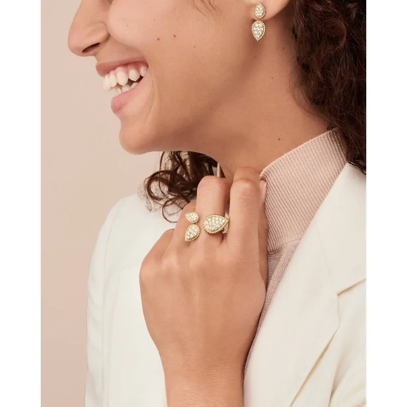 Combine these incredibly versatile ear studs at will and with any outfit. In yellow or white gold, these fine diamond-paved single drops adorn your ear with an adorable touch of brightness. Add a second detachable motif to it and extend possibilities.