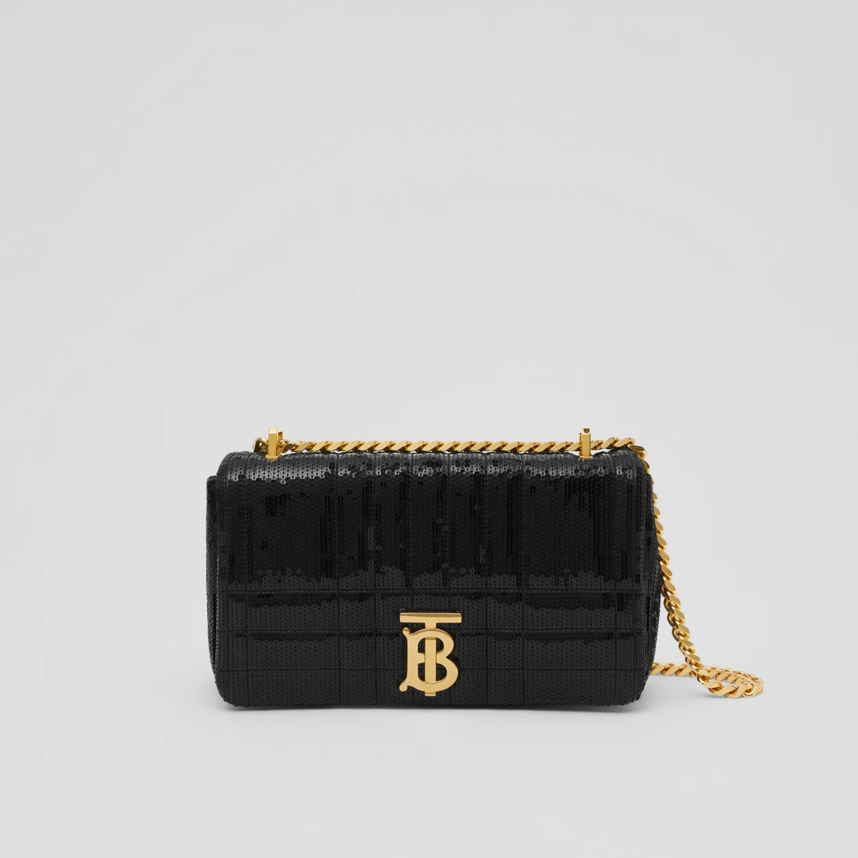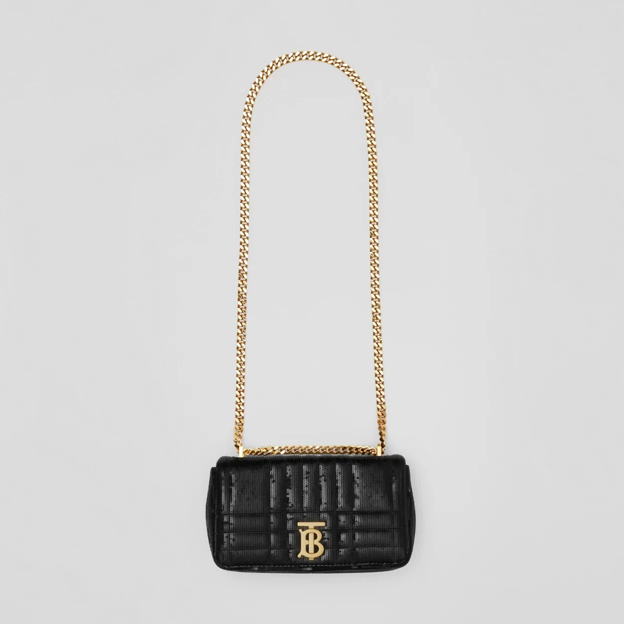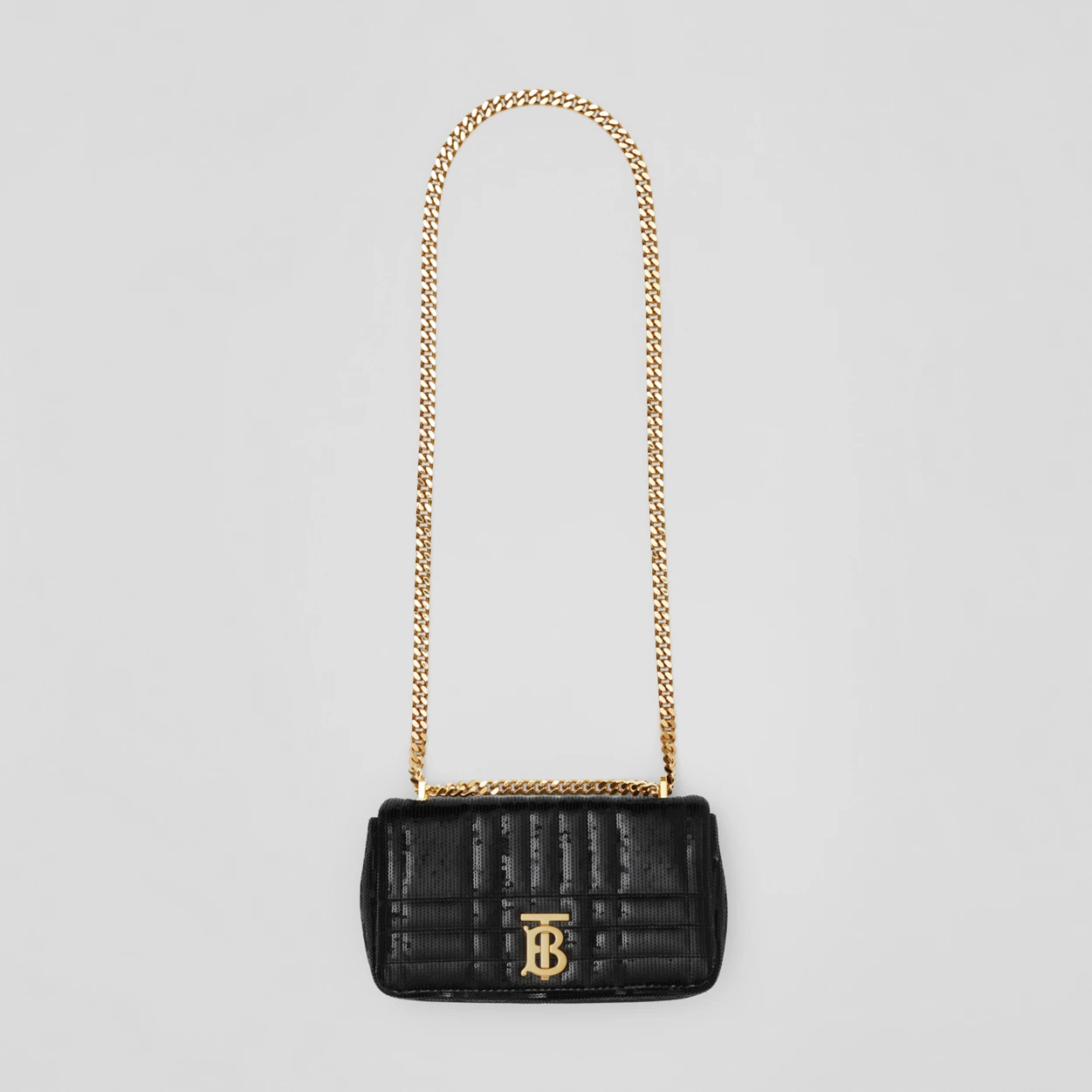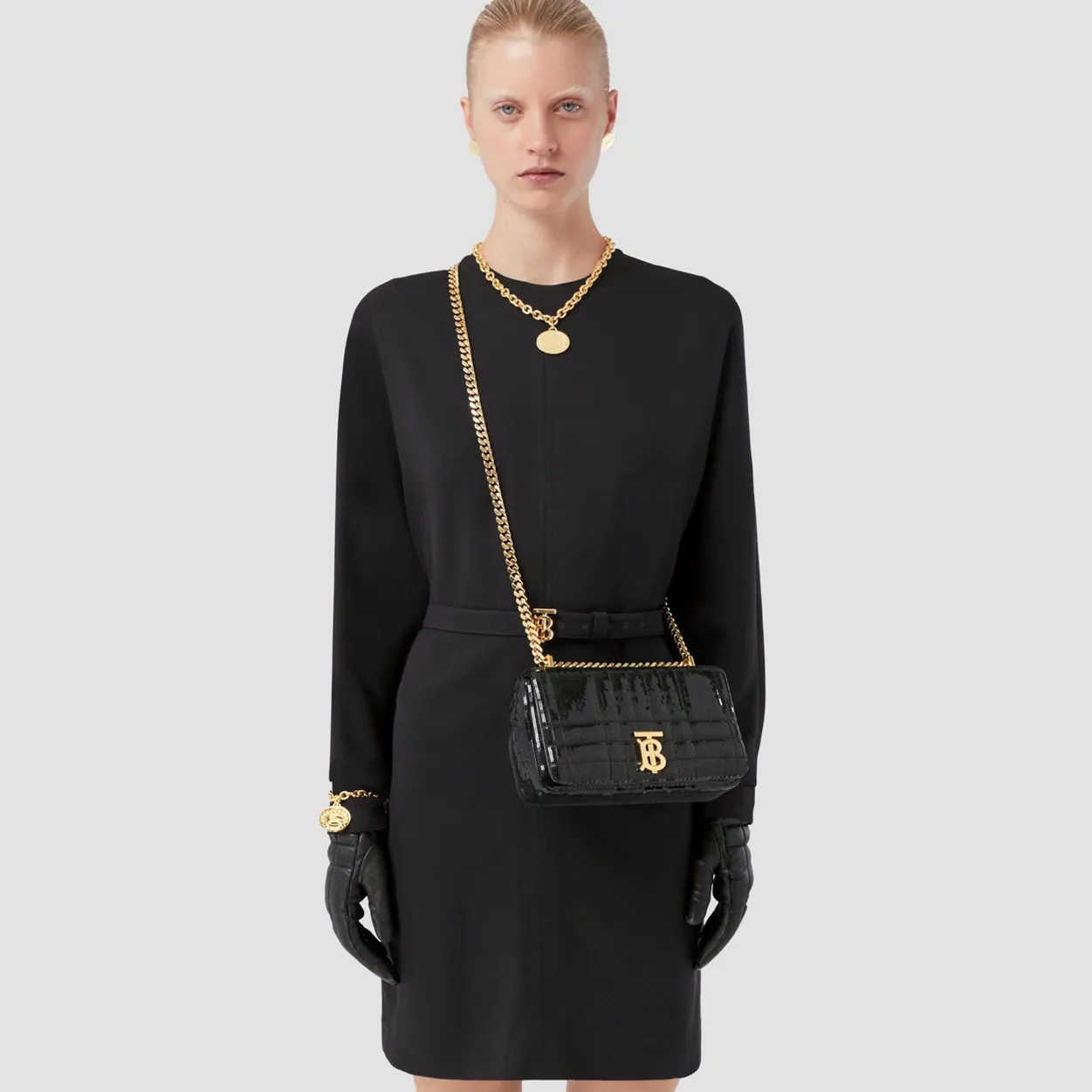 The quilted leather design is inspired by our signature check and adorned with hundreds of shimmering sequins – each individually embroidered by specialists in Italy.