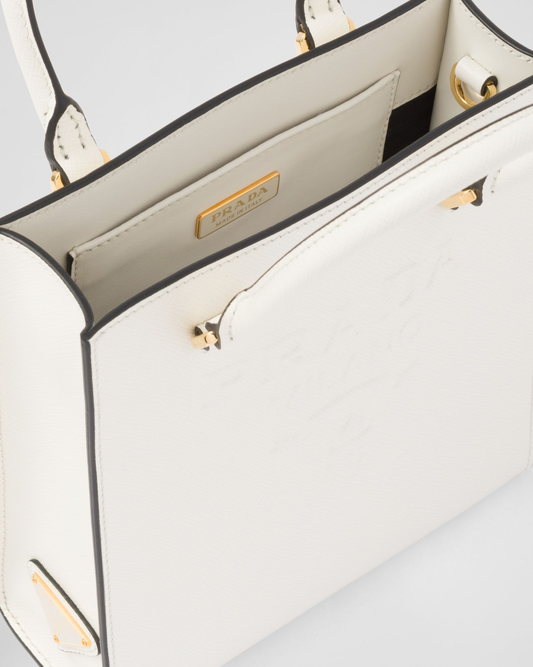 • Saffiano leather handles
