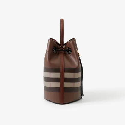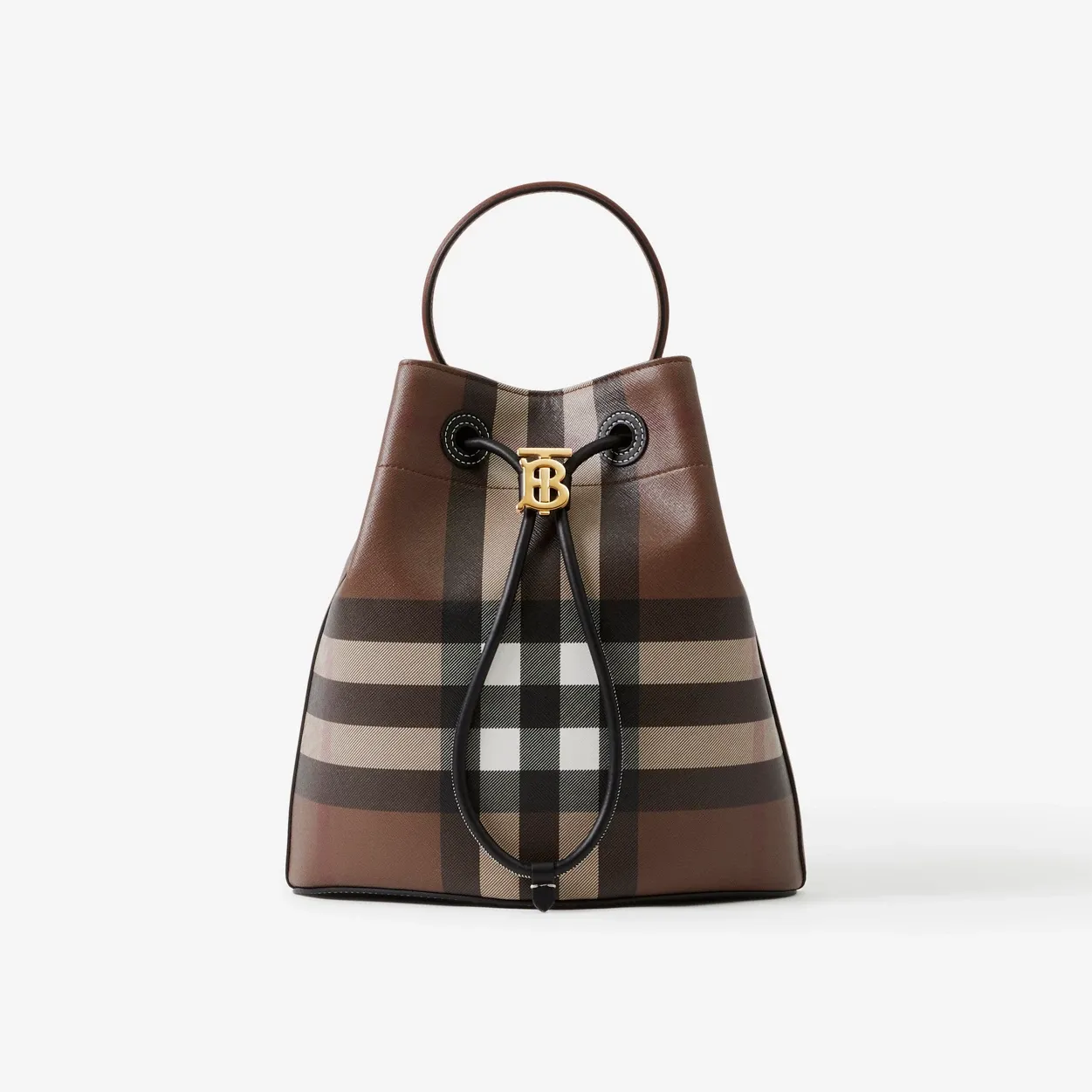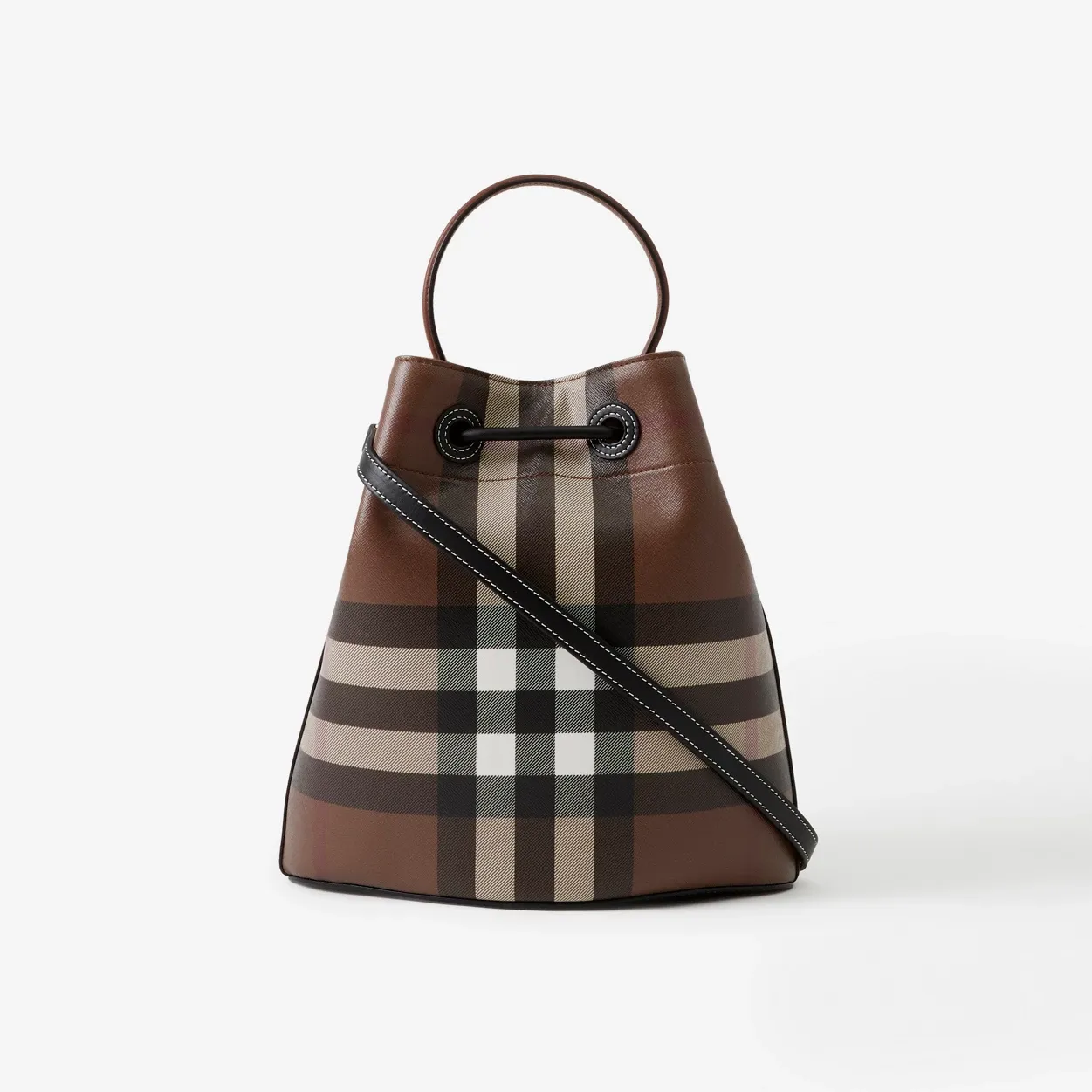 A drawcord bucket bag in Burberry Check, finished with Italian-tanned leather trims and our Thomas Burberry Monogram.
