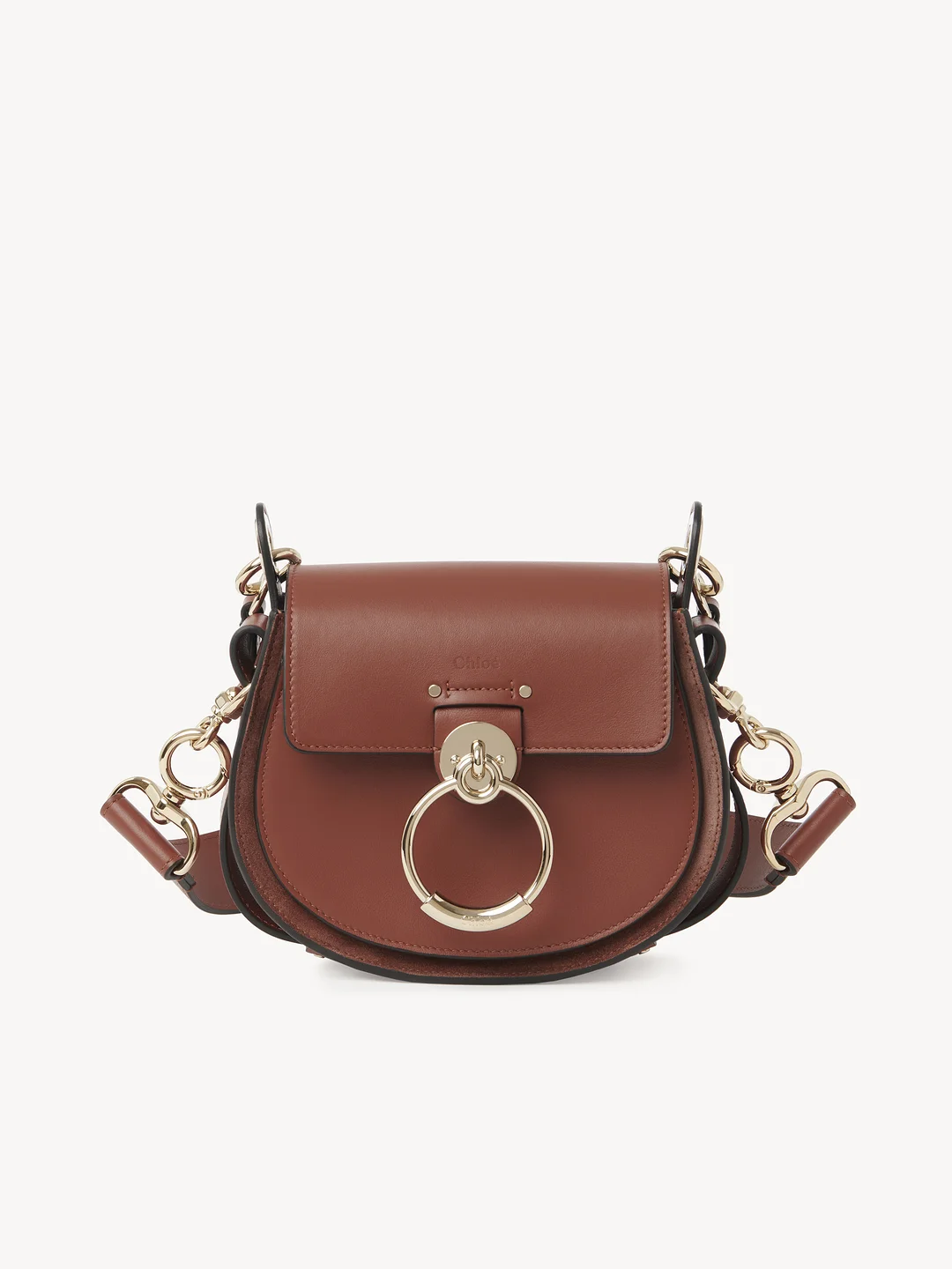 Crafted from an elegant combination of shiny calfskin and suede calfskin, the Tess small purse reveals a sophisticated round silhouette anchored in the Maison's DNA. The striking front loop showcases Chloé's "O" signature.