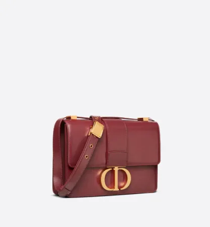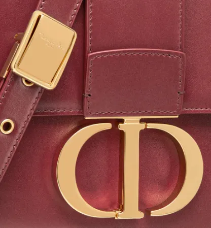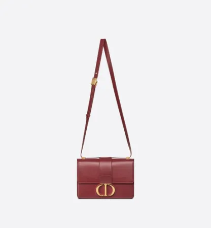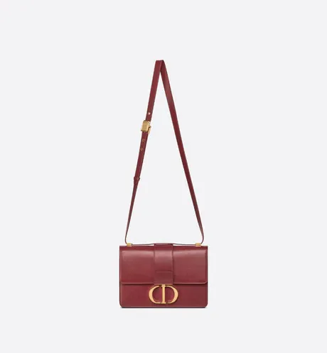 The 30 Montaigne line, inspired by the hallmark address, offers essential pieces that embody the House's iconic codes. The handbag is crafted in brick red box calfskin for an elegant and modern design. The flap has an antique gold-finish metal 'CD' clasp, inspired by the seal of a Christian Dior perfume bottle. Other details, like the embossed '30 MONTAIGNE' signature at the back, highlight the streamlined design. The style has an adjustable leather shoulder strap and can be carried by hand, worn over the shoulder or crossbody.