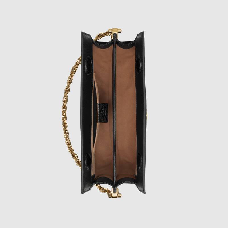 Crafted in GG Supreme canvas with inlaid Web stripe detail, the chain strap shoulder bag boasts a vintage inspired design. The structured shape secures with a magnetic closure, trimmed with leather and Double G hardware—an archival detail.