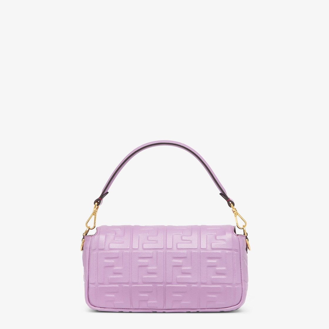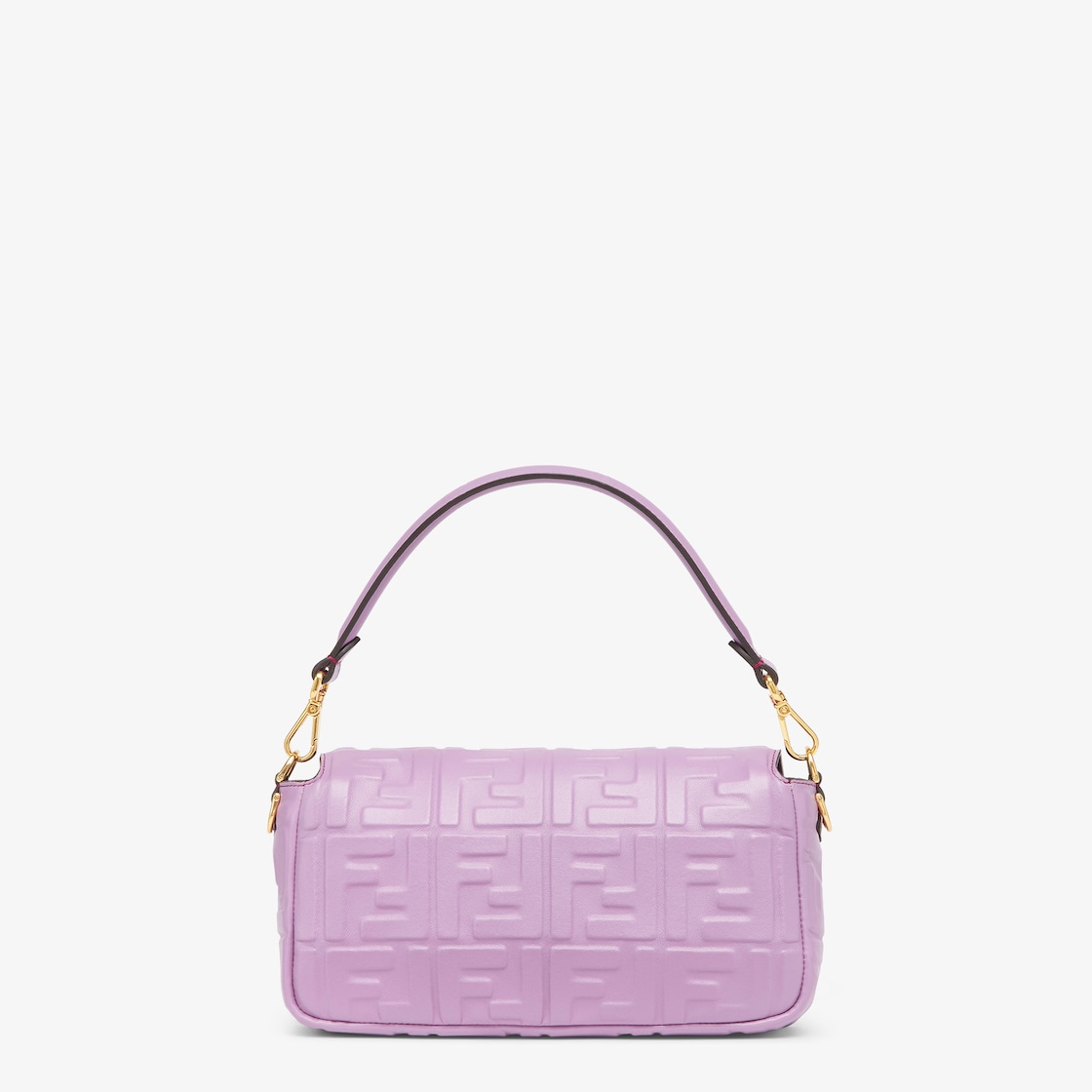 Iconic medium Baguette bag made of lilac soft nappa leather with a three-dimensional texture embossed FF motif. Decorated with an FF clasp.