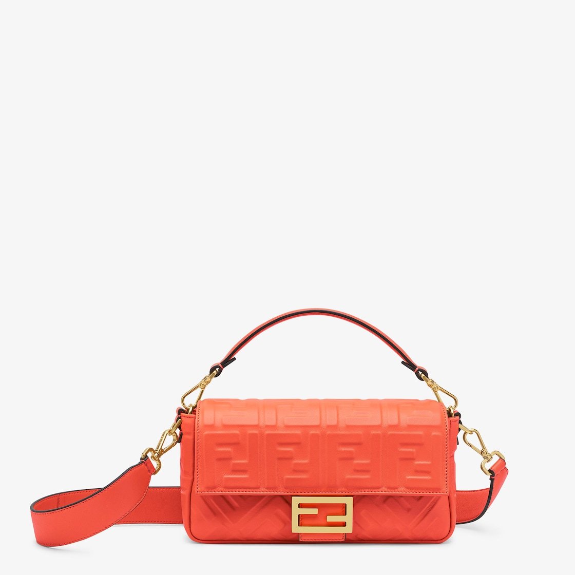 Iconic medium Baguette bag made of soft nappa leather in red with a 3D texture, embossed FF motif. Decorated with an FF clasp.