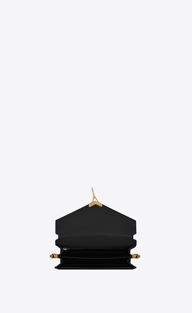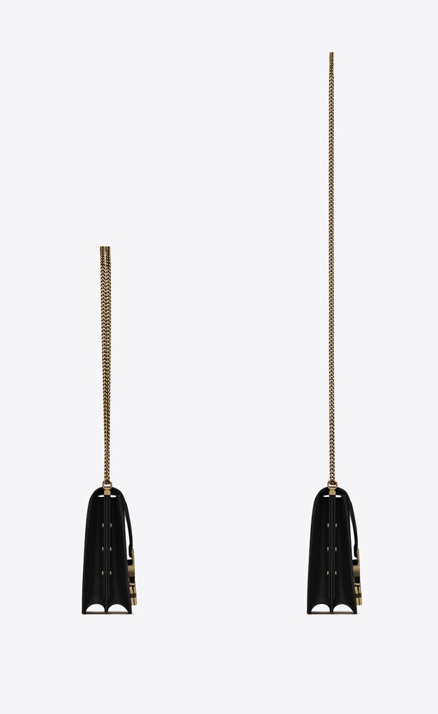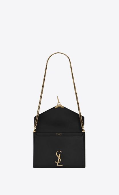 SAINT LAURENT MONOGRAM BAG WITH FLAP CLOSURE AND STUDS ON THE SIDES, TWO COMPARTMENTS, A FLAT FRONT POCKET WITH A YSL MONOGRAM FASTENING, AND DOUBLE CURB CHAIN.