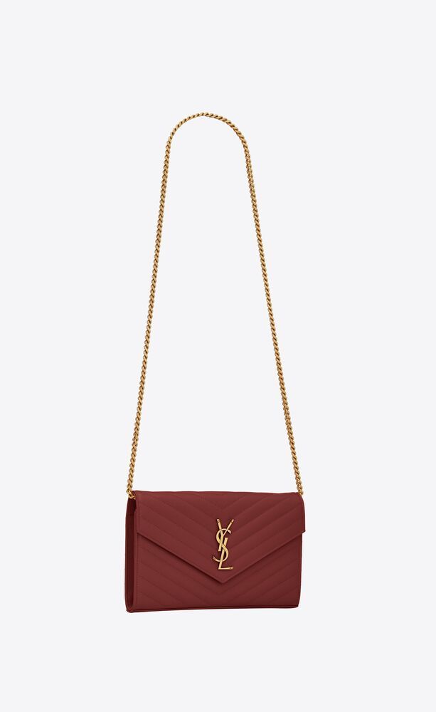 FLAP FRONT WALLET MADE WITH METAL-FREE TANNED LEATHER, DECORATED WITH METAL YSL SIGNATURE AND QUILTED OVERSTITCHING, FEATURING A DETACHABLE CHAIN STRAP FOR SHOULDER OR HAND CARRY AS A CLUTCH.