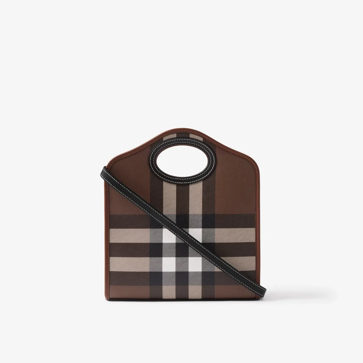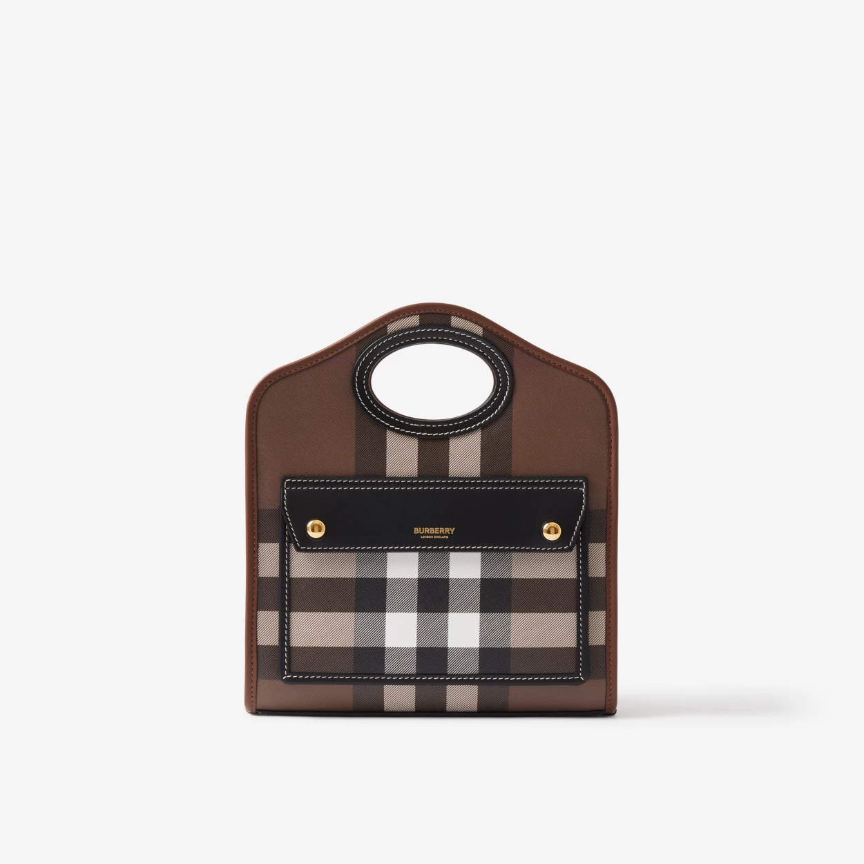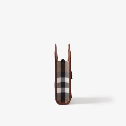 An archive-inspired tote in our Exaggerated Check and topstitched leather, featuring a front pocket stamped with our logo. Carry by the reinforced top handles or detachable shoulder strap. The main material of this product is made with at least 30% bio-based materials. Bio-based materials are derived from renewable natural resources such as plants and castor oil.