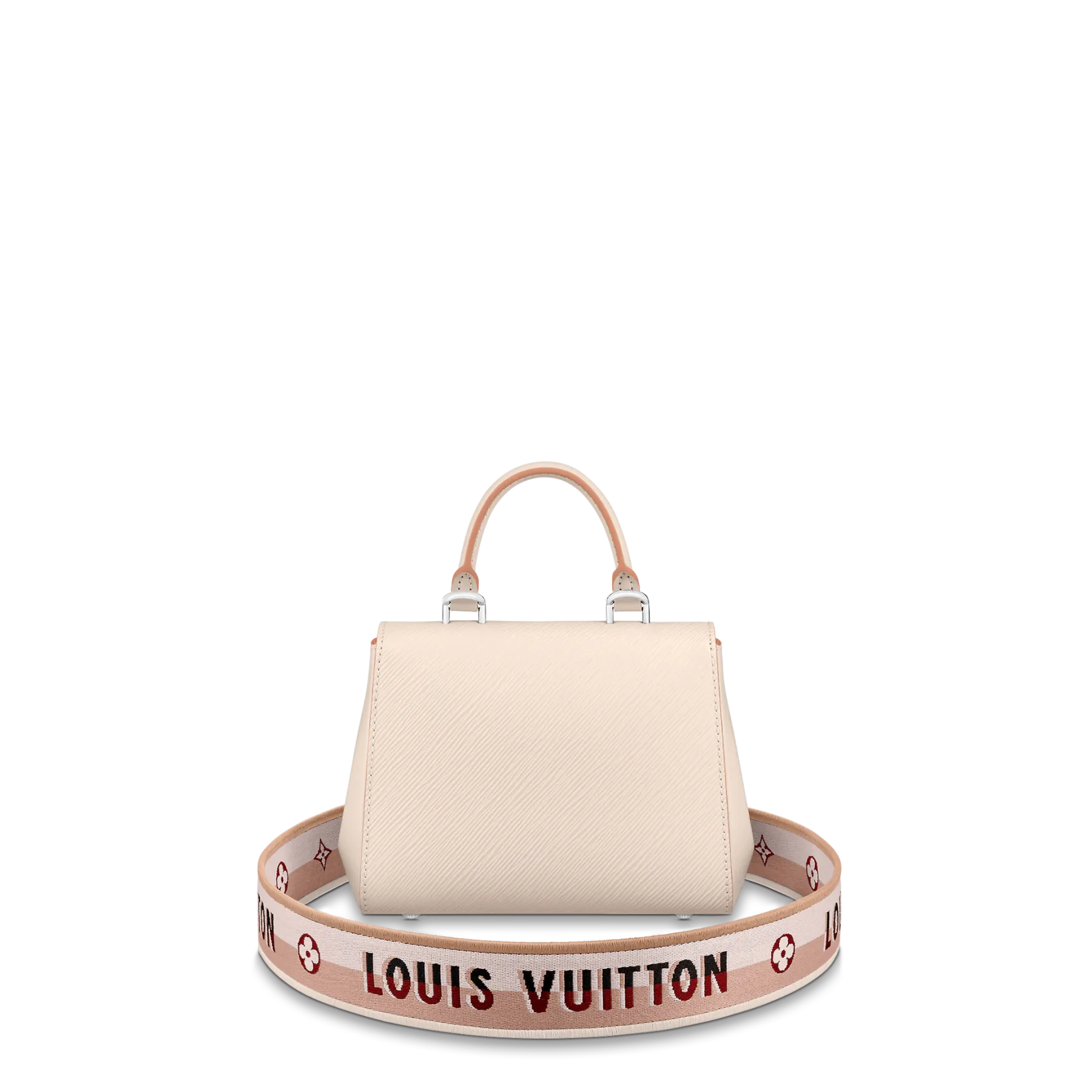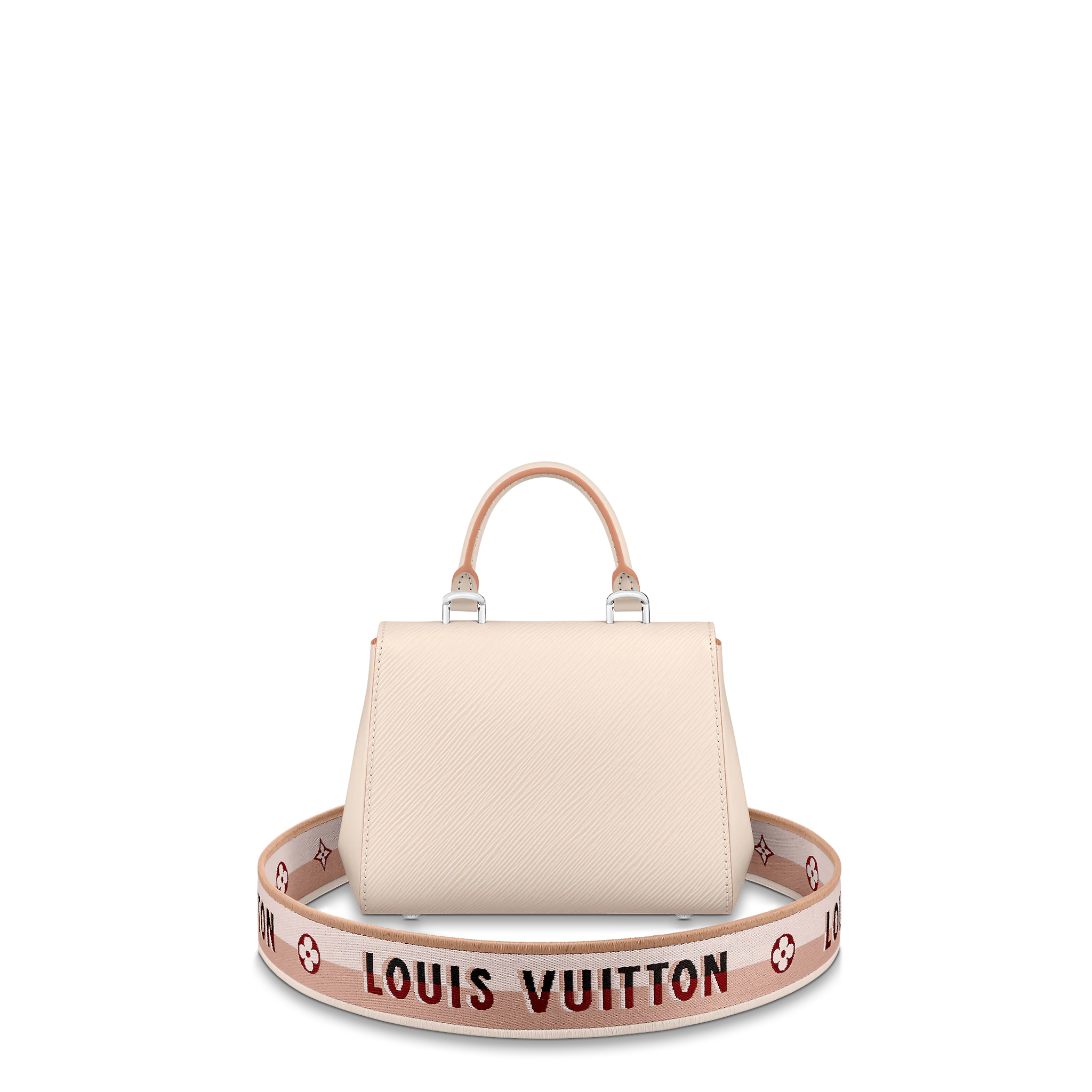 This exclusive Cluny Mini handbag features a reversible jacquard strap: one side displays the Louis Vuitton logo for a statement look; the other shows Monogram Flowers, for a subtle effect. Made from textured Epi leather, the bag also features an LV signature in smooth resin and a contrasting lining. The strap is removable for a more dressed-up allure.