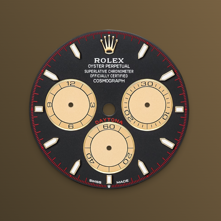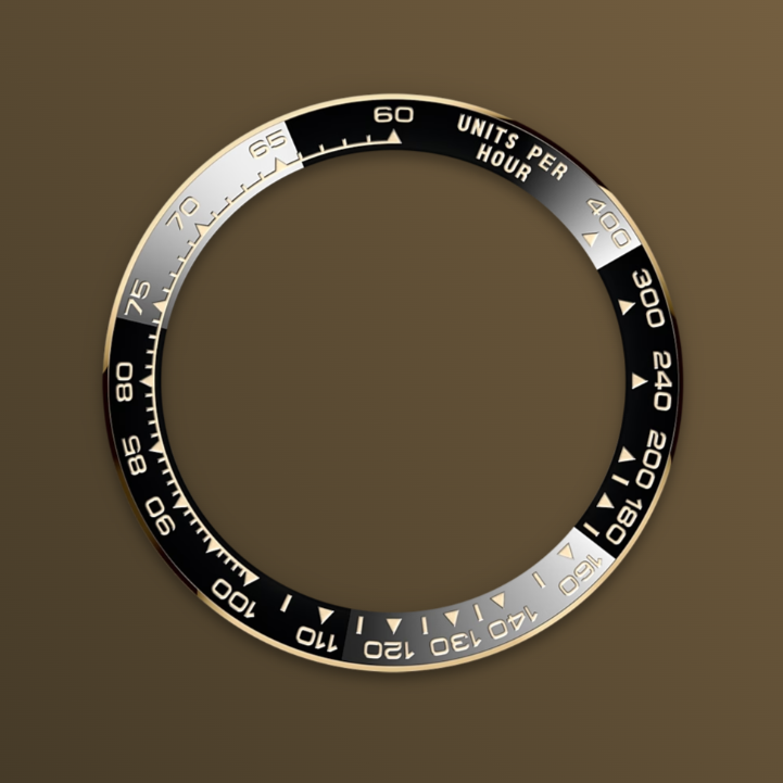 Oyster Perpetual Motion Cosmograph Daytona in 18-carat yellow gold with black and champagne dial and Oysterflex strap with black Cerachrom bezel and tachymeter.