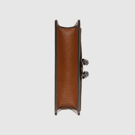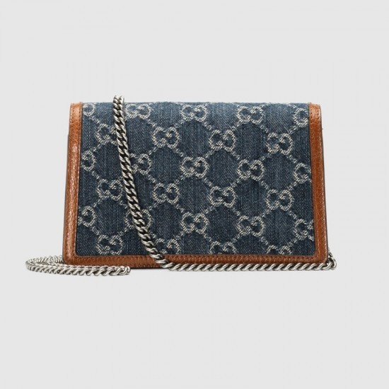 Dark blue and ivory eco washed organic GG jacquard denimBrown leather trimAntique silver-toned hardware with blue enamelMicrofiber liningInserts contain leather made through an alternative metal or chrome free tanning process, reducing the environmental footprint compared to traditional methods.Attached key ring that can attach to a separate bagChain shoulder strap with 23.6″ dropPin closure with side releaseThis item can fit a cell phone up to 2.7″W x 5.5″H x .2″DThe Gucci card case wallet will fit inside this productMini size: 6.7″W x 3.9″H x 1.6″DWeight: .3kg approximately Made in ItalyThe model is 5’8″ tall