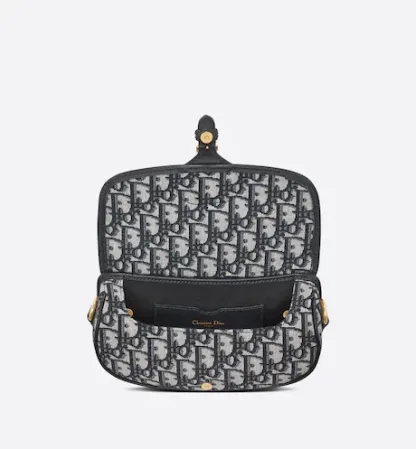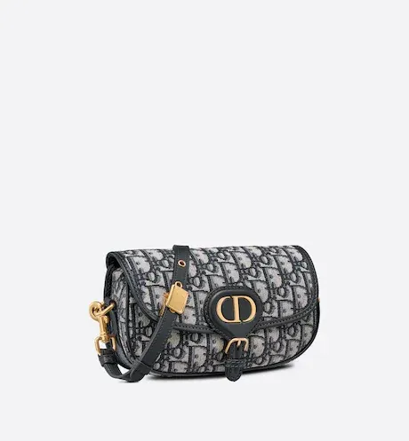 The Dior Bobby East-West bag modernizes the allure of the Hobo silhouette through elegant lines and harmonious proportions. Crafted in blue Dior Oblique jacquard, the style is enhanced by antique gold-finish metal details, and a removable and adjustable sliding shoulder strap with a military-inspired buckle. The medium Dior Bobby bag can be carried by hand or worn over the shoulder, or crossbody for a sportier touch.