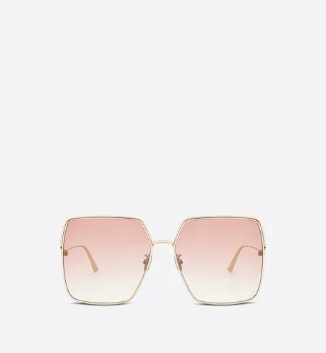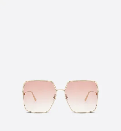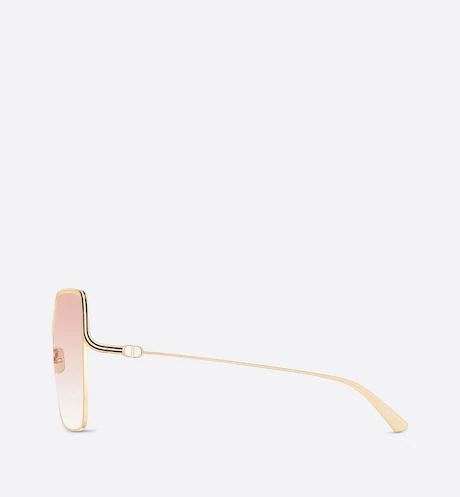 The large square EverDior SU sunglasses are an elegant and refined shape. The engraved and knurled motif on the frame is embellished with a deep green lacquer treatment that further highlights the metal tint. A subtle openwork 'CD' signature on the temples lends a touch of sophistication to the style. The thin gold-finish metal frame highlights the pink shaded lenses.