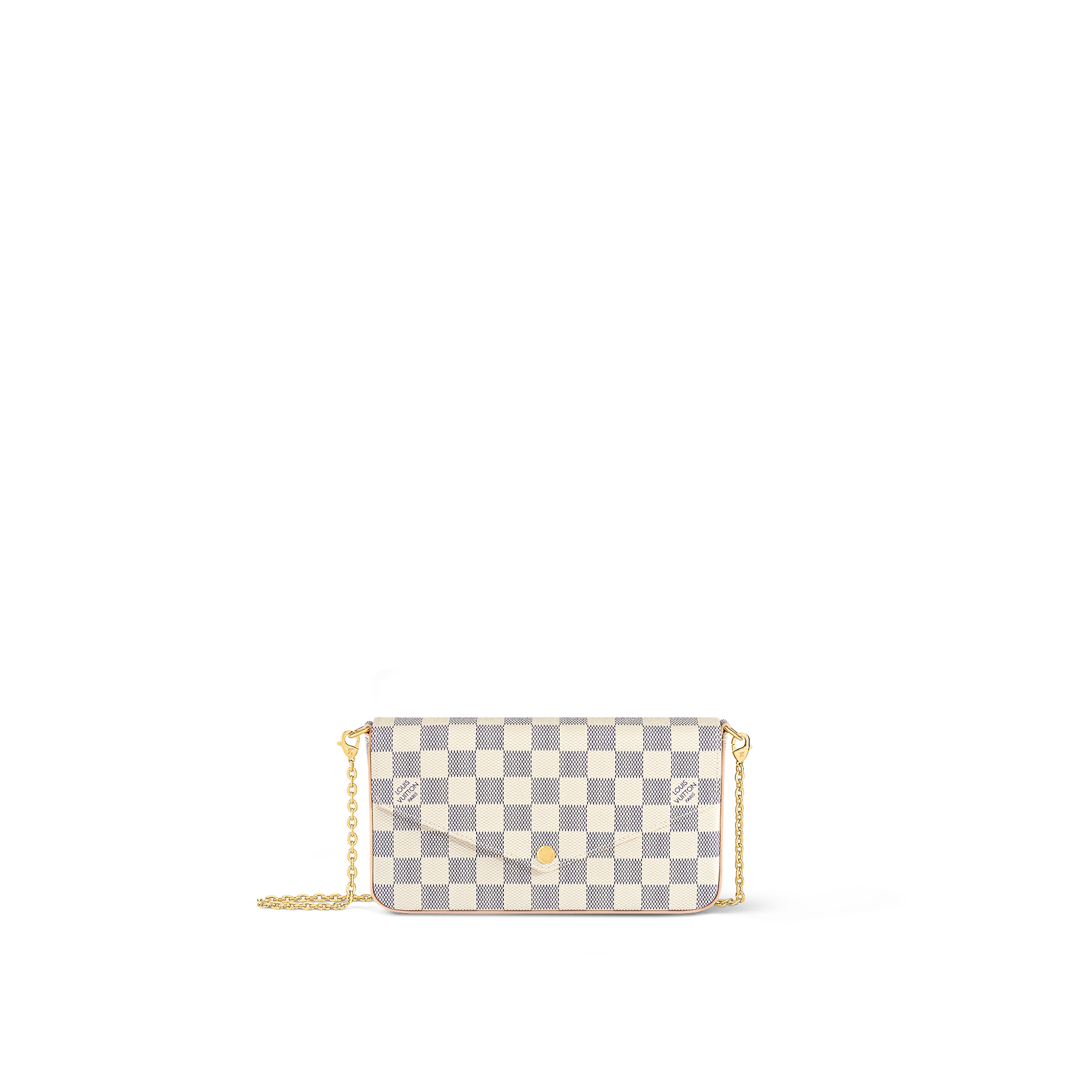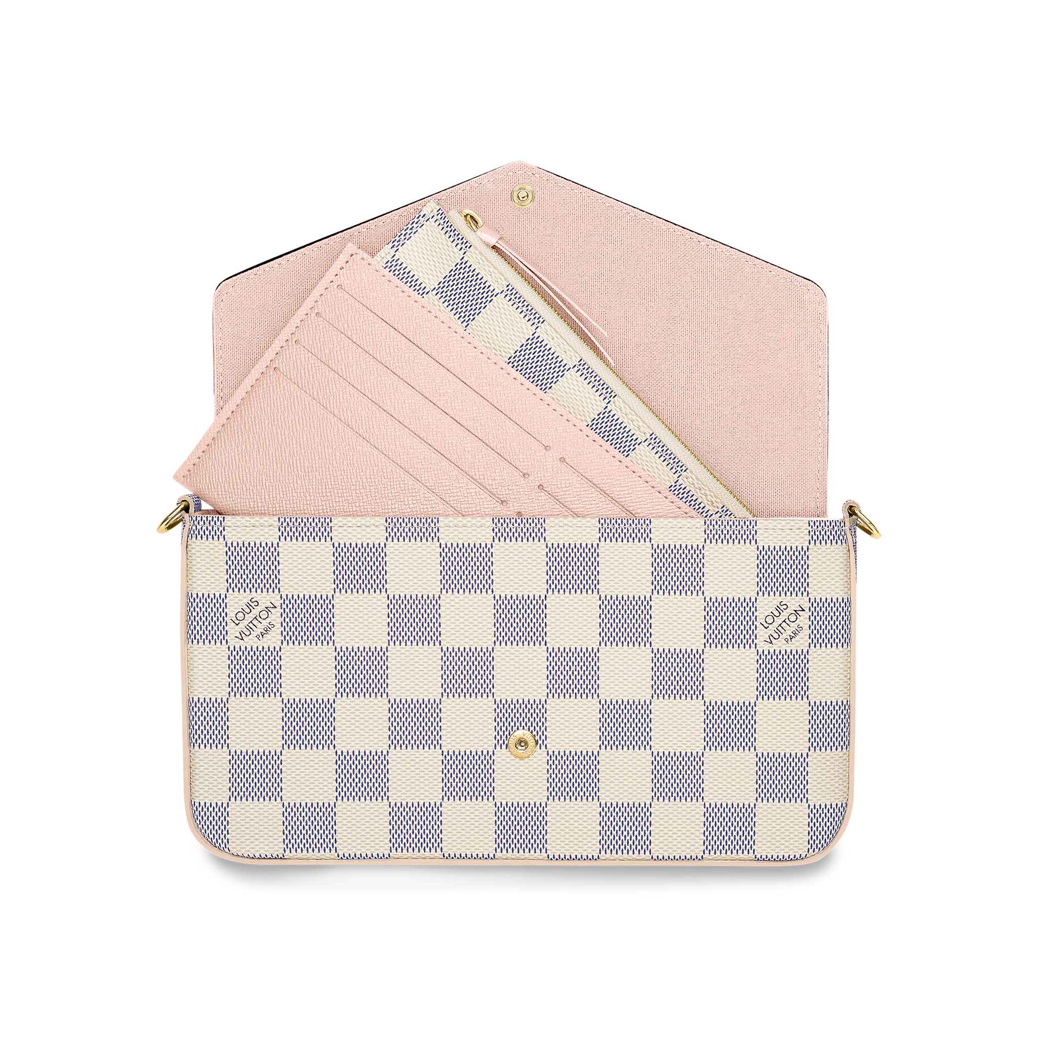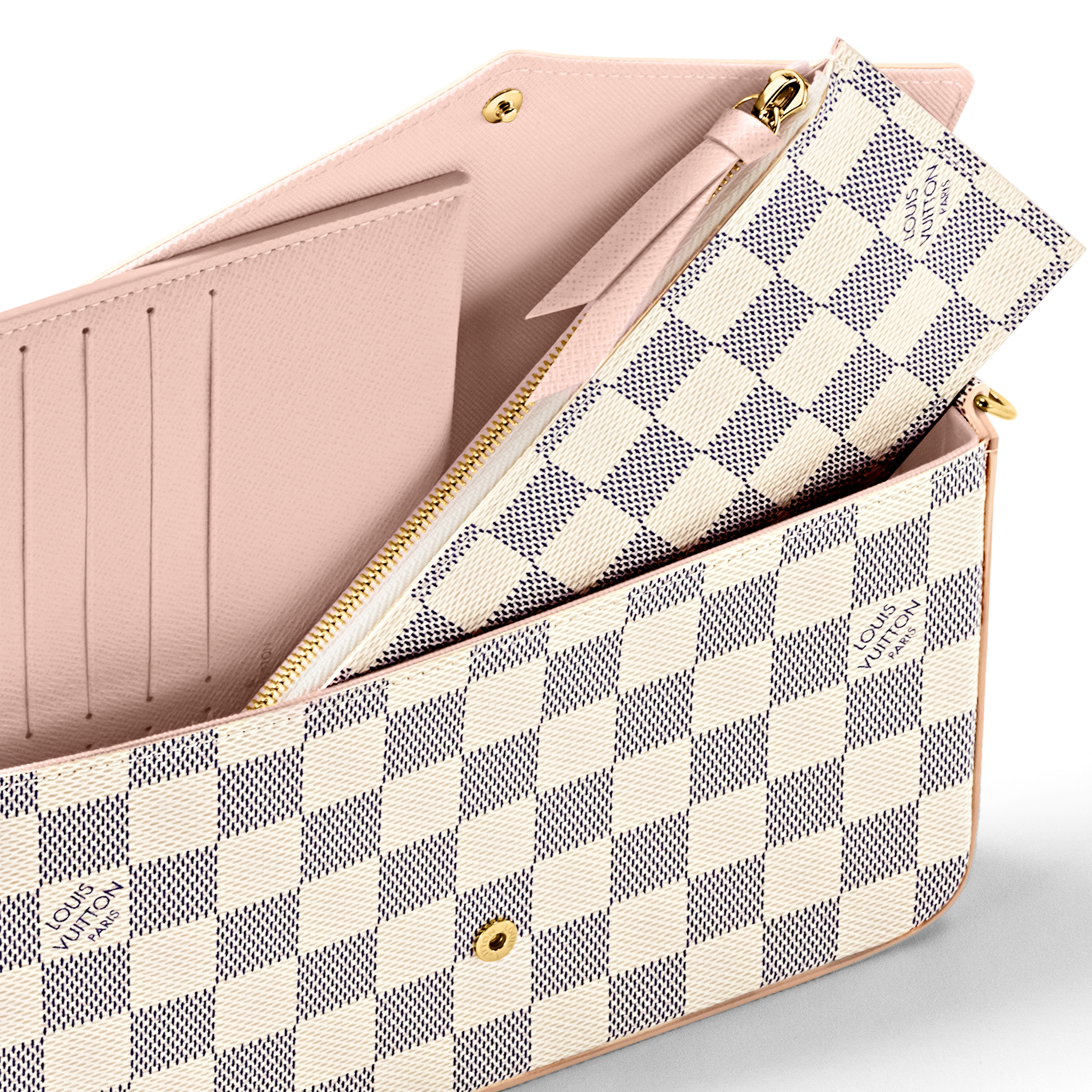 The Pochette Félicie in Damier Azur canvas is a versatile pouch for modern lifestyles. Its envelope-style flap opens to reveal a spacious compartment with two removable pockets: one zipped, another with several card slots. It can be carried on the shoulder or across the body, or - with the chain removed - as a clutch.