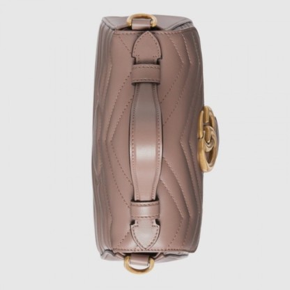Dusty pink matelassé chevron leatherAntique gold-toned hardwareMicrofiber lining with a suede-like finishDouble GInterior open pocketLeather handle with 2.5″ dropDetachable chain strap with leather detail with 21.5″ drop and 45″ lengthWeight: .6kg approximately8″W x 6″H x 3″DMade in ItalyThe model is 5’10” tall