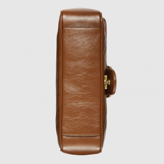 Brown diagonal matelassé leatherAntique gold-toned hardwareMicrofiber lining with a suede-like finishDouble GInterior zipper pocketSliding chain strap can be worn as a shoulder strap with 22” drop, as a top handle with 12” drop or as a cross body bag.Flap with spring closureThis item can fit a cell phone up to 3.1”W x 6.2”H x .3”DThe Gucci card case wallet will fit inside this productWeight: .648kg approximatelySmall size: 10″W x 6″H x 3″DMade in ItalyThe model is 5’8″ tall