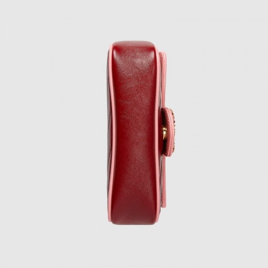 The GG Marmont super mini bag is introduced in matelassé leather in contrasting shades of red and pink. A part of the Ouverture collection, the House's Beloved lines are introduced in vivid shades that recall precious jewels. The style is completed with the line's signature Double G hardware—enriched with enamel.