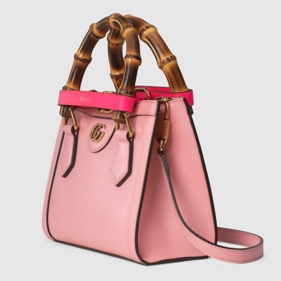 Combining recognizable elements of the House, the mini tote bag is defined by its bamboo handles and Double G hardware. Crafted from pink leather, the accessory is further accentuated by two neon bands, a playful reference to the bands used to keep handles in shape.