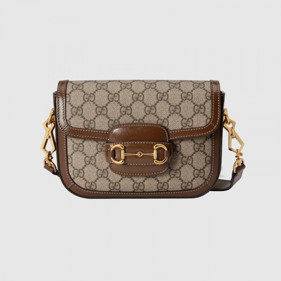 Beige and ebony GG Supreme canvasBrown leather trimGold-toned hardwareGreen and red WebHorsebit detailThis item can fit a cell phone up to 3″W x 6.6″H x .4″D9Detachable shoulder straps: Nylon Web with 18.8″ drop and leather with 21.8″ dropLeather strap with 55.5cm drop and Web with 48cmMini size: 8.1″W x 5.7″H x 2″DCotton linen liningMade in ItalyThe model is 5’5″ tall.