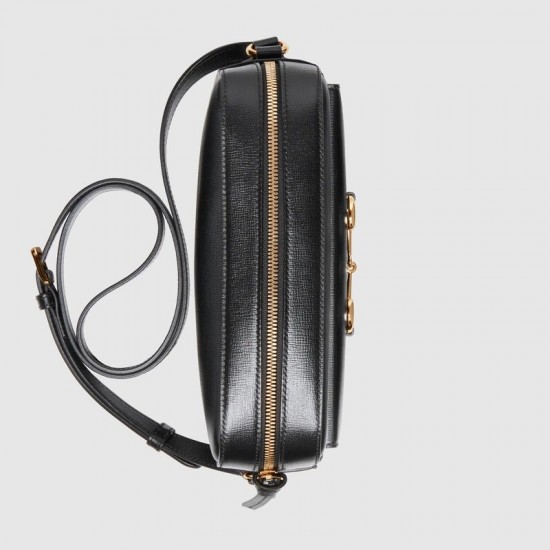 Black textured leatherGold-toned hardwareMicrofiber lining with a sude-like finishHorsebit detail at the frontInterior: zip pocketFront pocketThis item can fit a cell phone up to 3.1”W x 6.6”H x .4”DShoulder strap with 19.7″ dropWeight: .46kg approximately 8.8″W x 6.7″H x 2.6″DMade in Italy The model is 5’8″ tall