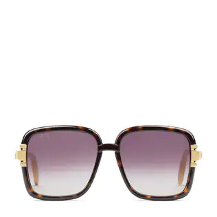 Crafted from tortoiseshell injection, this pair of sunglasses takes inspiration from '60s styles with oversized square-frames. A green and red Web detail features on the front—a nod to the House's equestrian heritage, while the signature Interlocking G appears in gold as a subtle detail on the side.